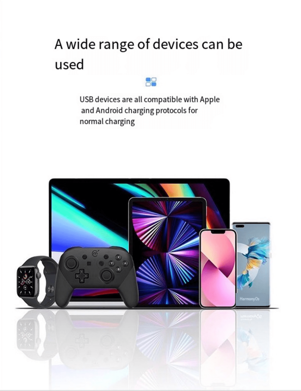 š Charge Anything: Power up your iPhone, Android, and other USB-powered devices simultaneously and efficiently.