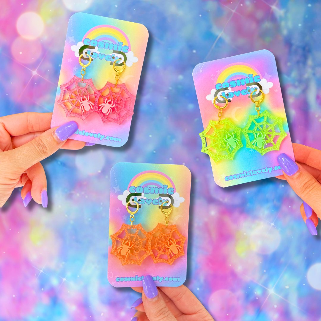 This listing is for ONE pair of Halloween NEON Spider Web Earrings