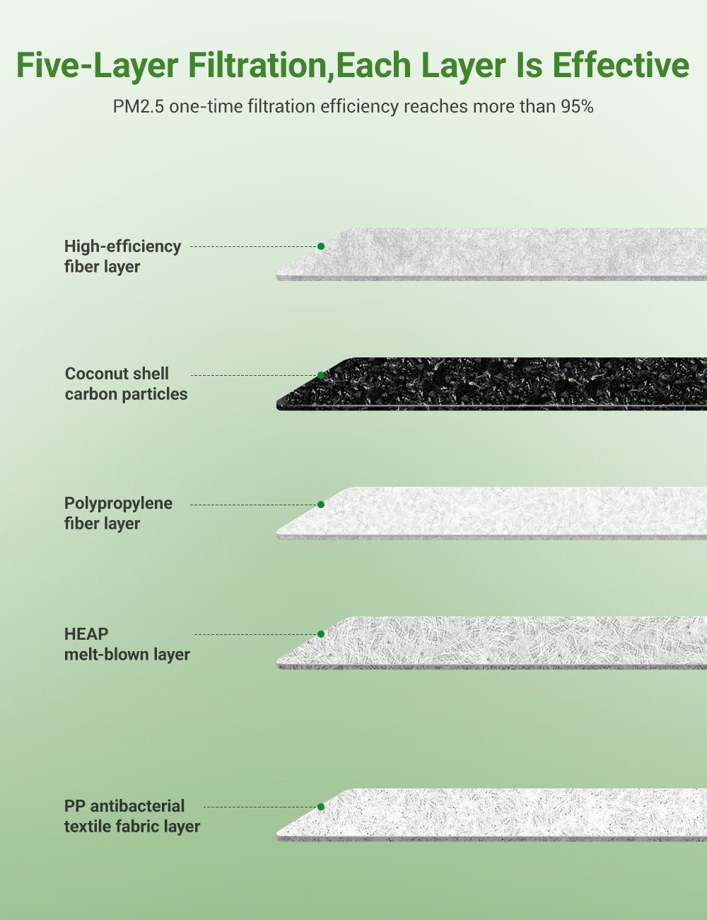 Material: Melt-blown electrostatic layer + HEPA filter layer + activated carbon