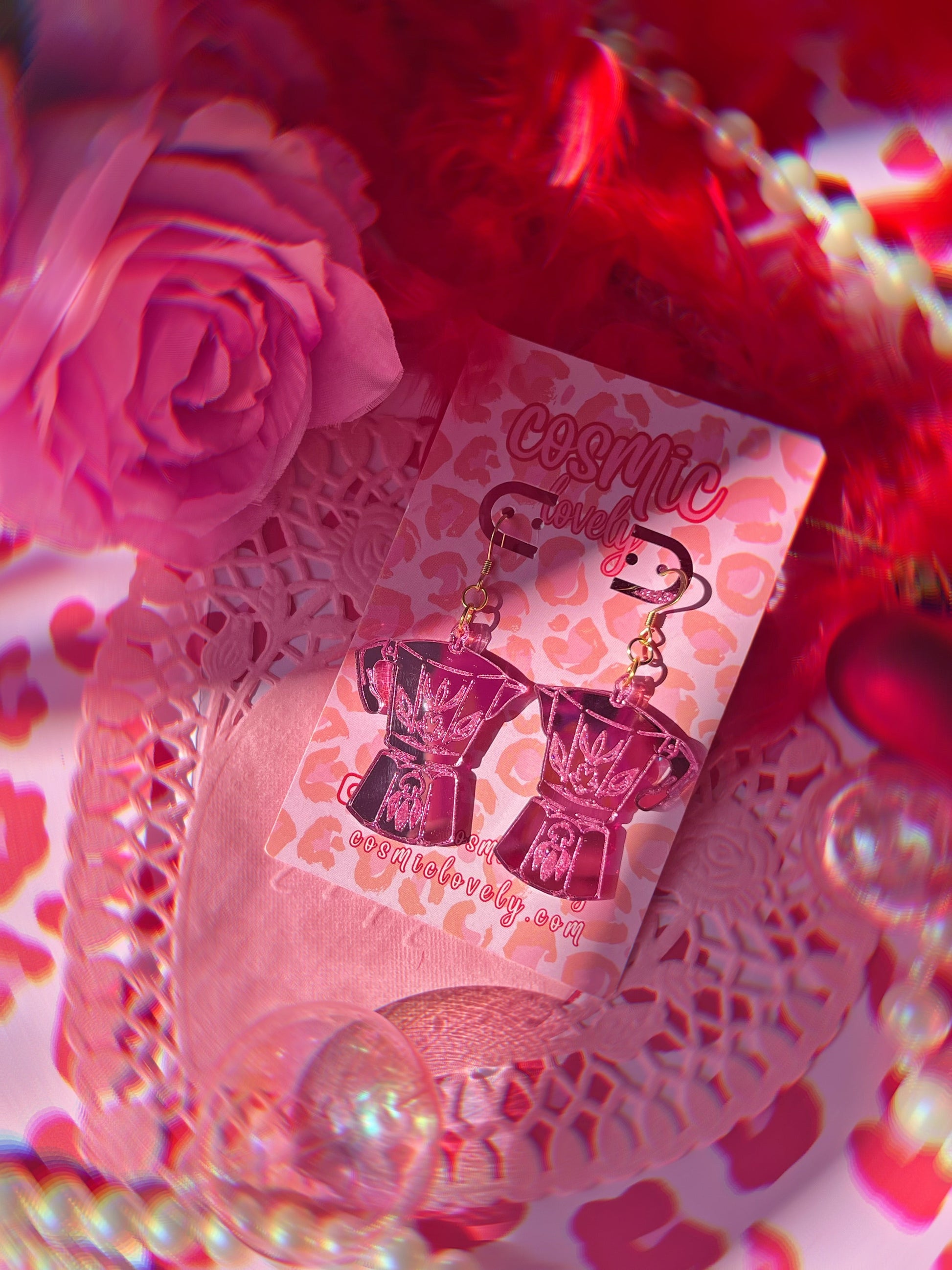 This listing is for ONE pair of Hot Pink Mirror Moka Pot Earrings