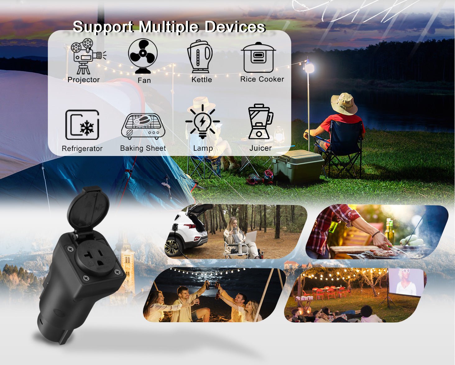 Instant Mobile Power: Delivers a stable 110V-125V / 16A (Approx. 1.9kW) output, perfect for powering laptops, fans, electric grills, coffee makers, projectors, and more.