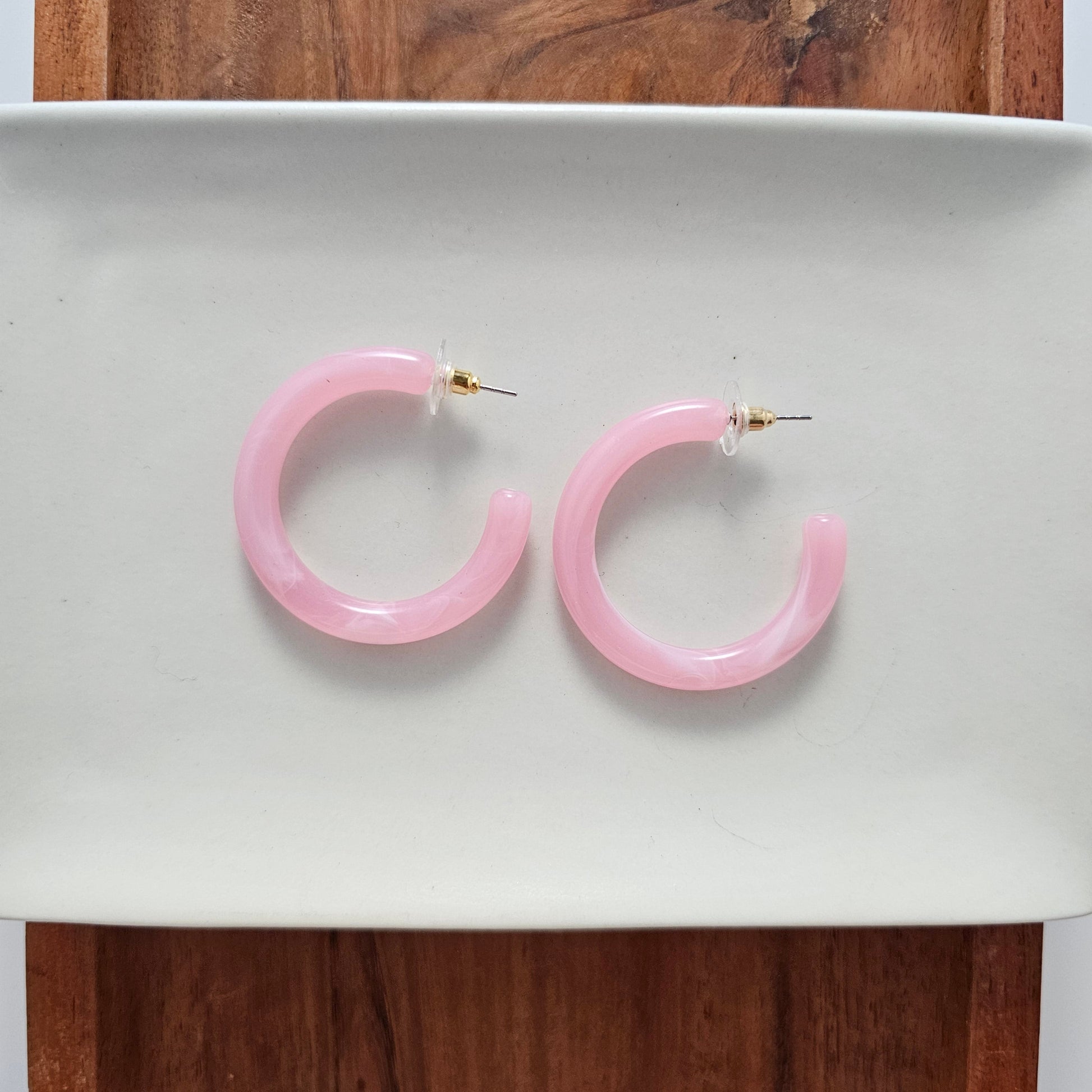 Introducing our Josie Hoops in Pink! These chunky resin hoops add a playful pop of color to any outfit. Express your unique style with these statement earrings. (WARNING: may cause compliments and envious stares)