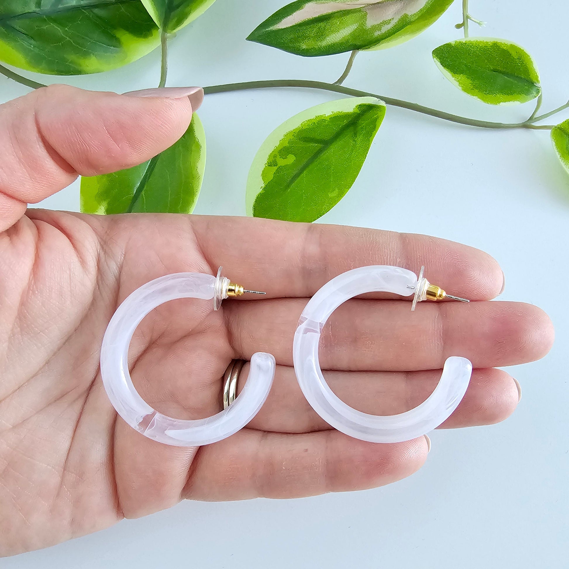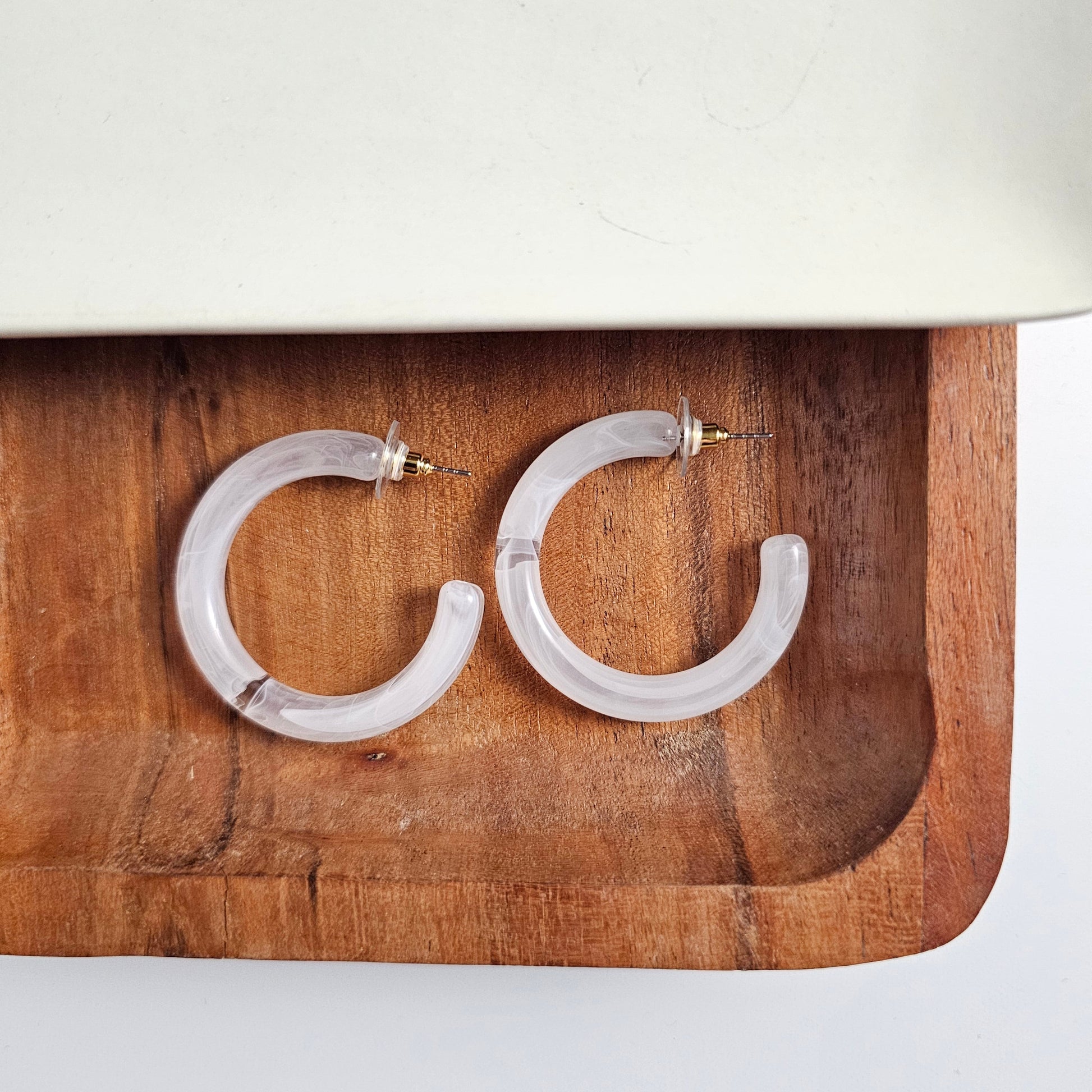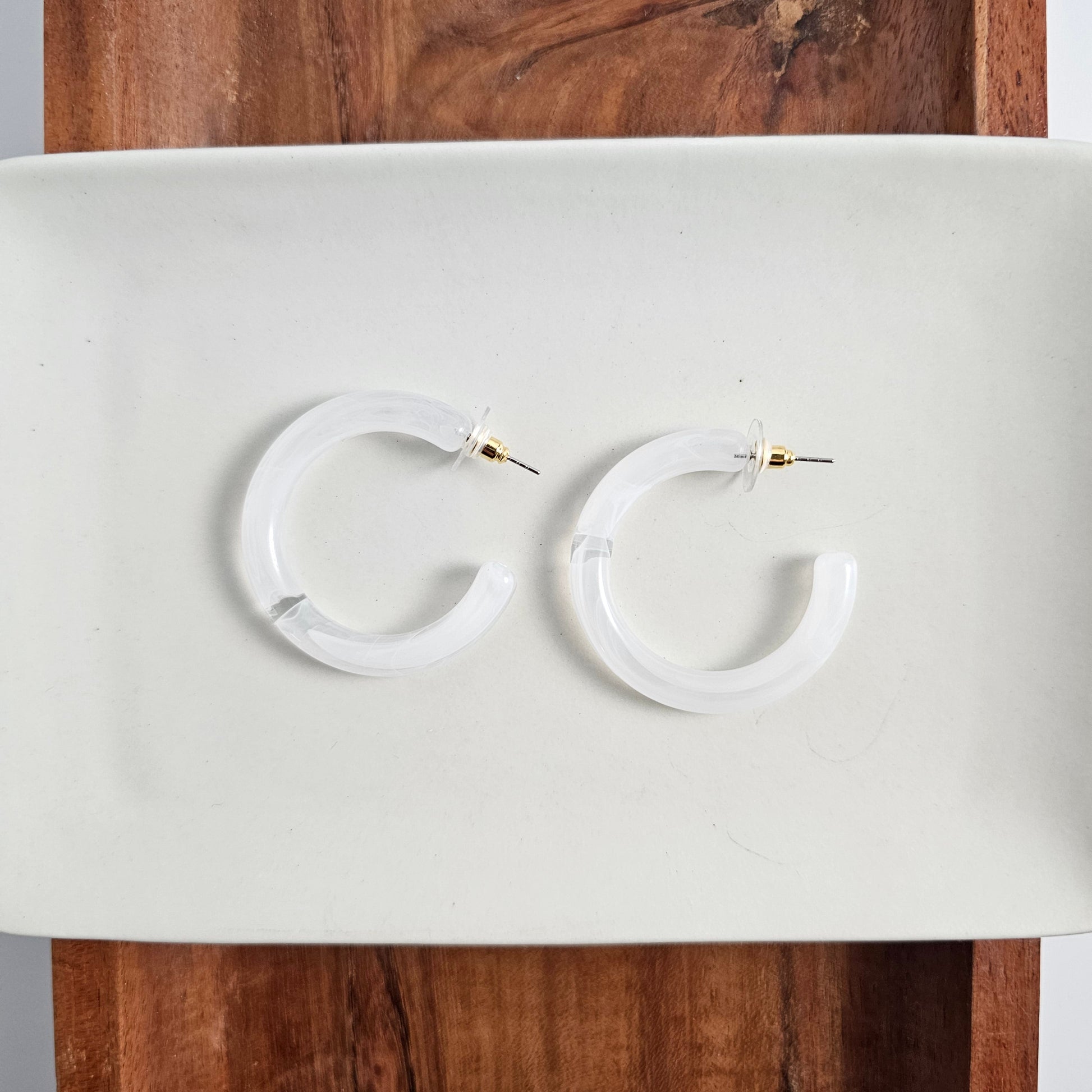 Introducing our Josie Hoops in White! These chunky resin hoops add a playful pop of color to any outfit. Express your unique style with these statement earrings. (WARNING: may cause compliments and envious stares)