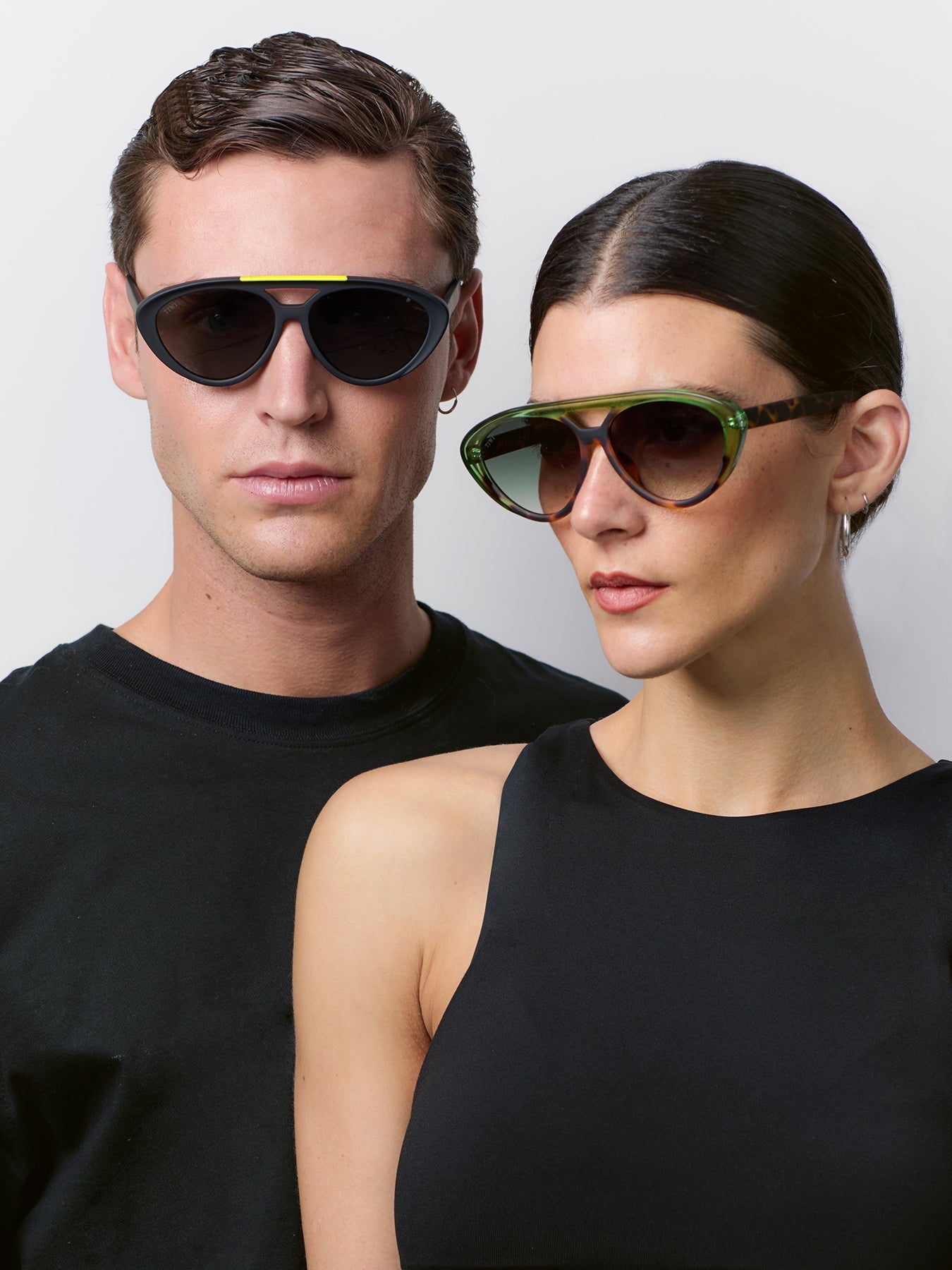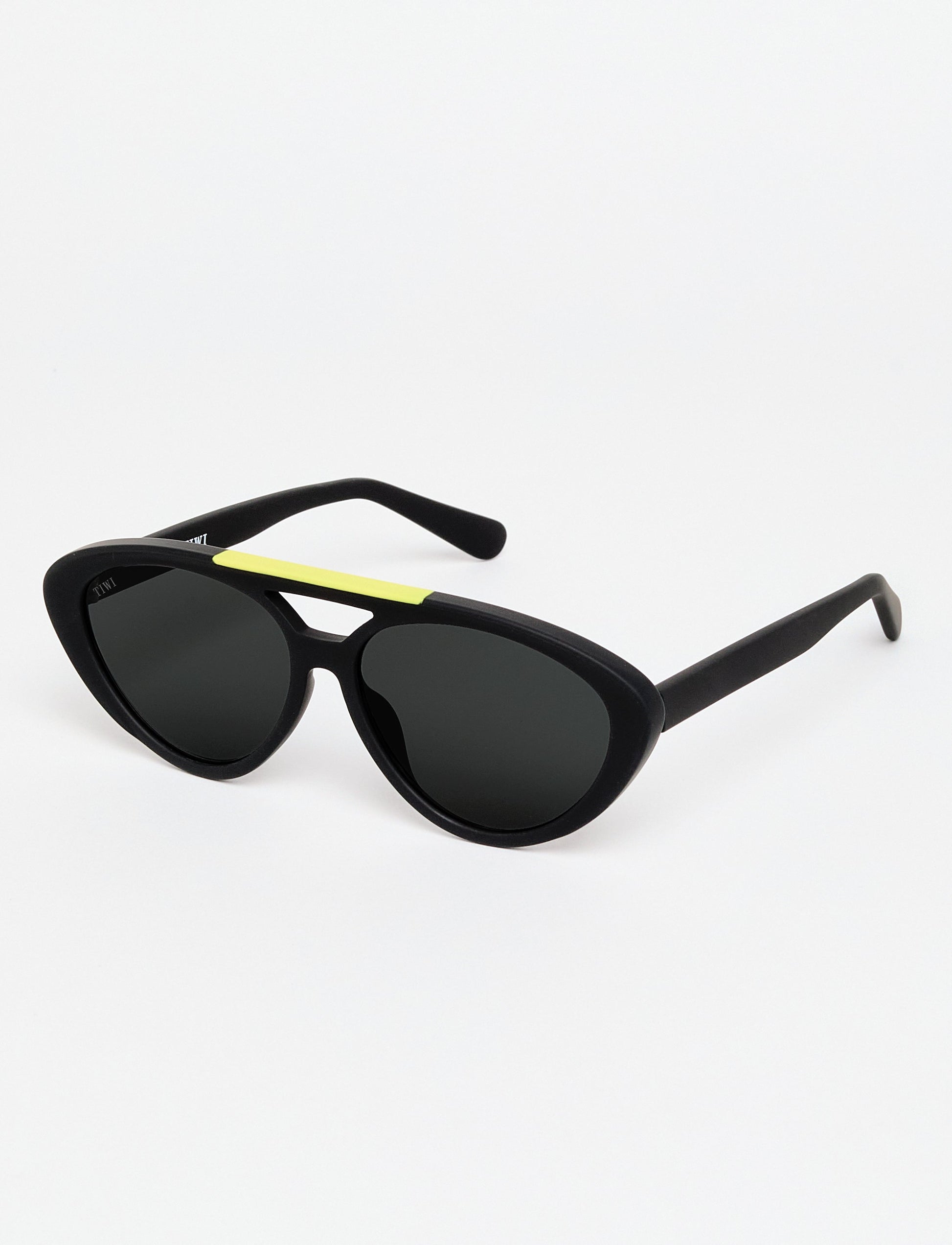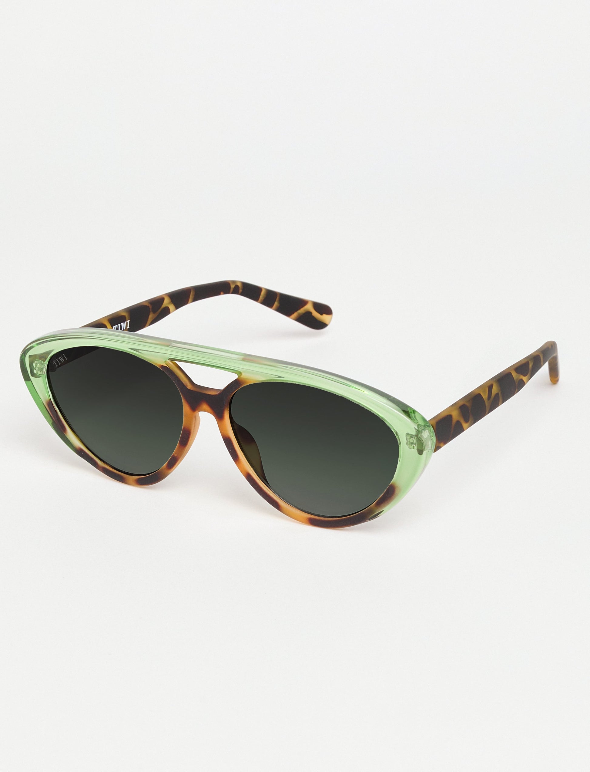 A lightweight, oval-shaped model with a double bridge that stands out for its subtle play of colour: vibrant shades such as green, blue or yellow that contrast with its already well-known green tortoise colour.