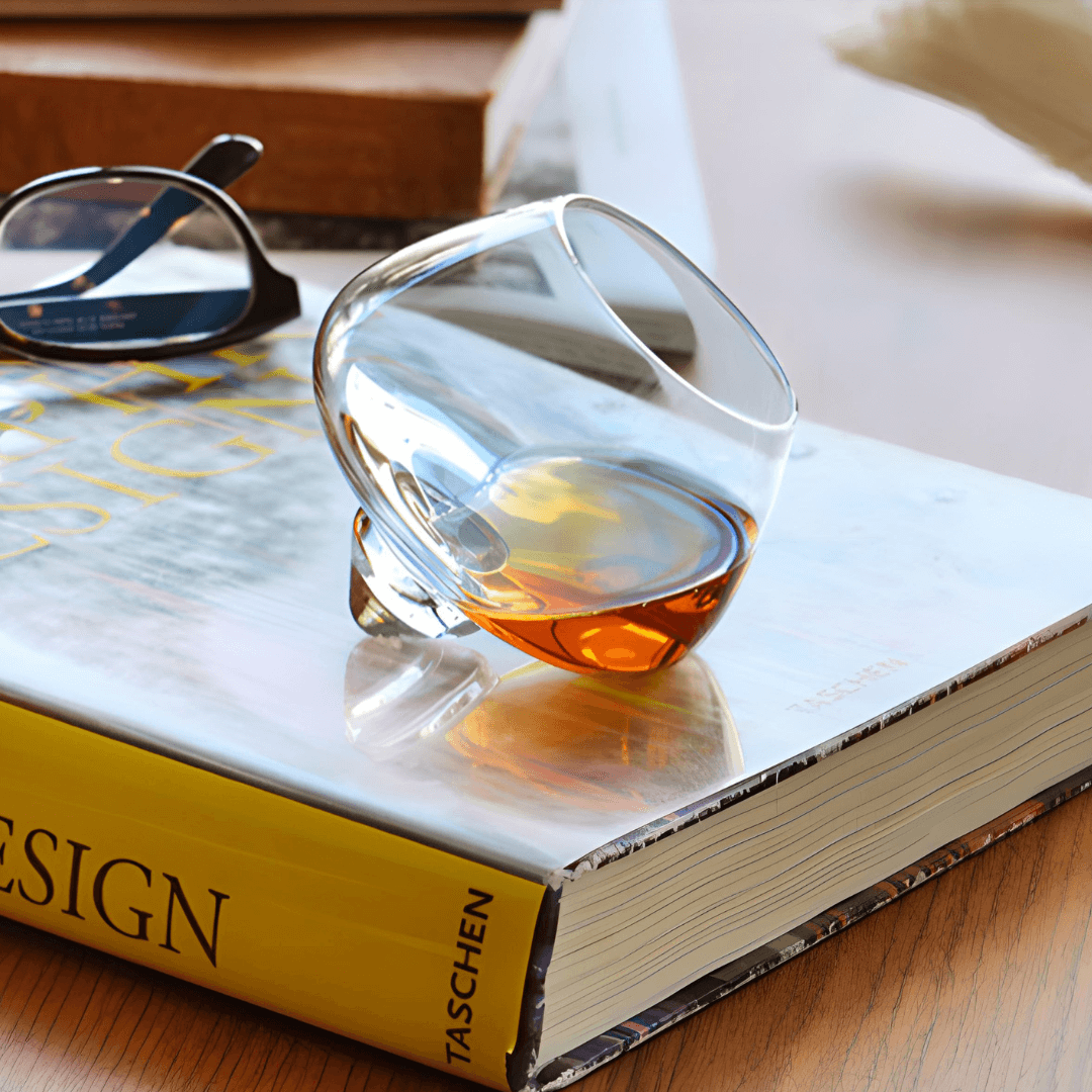 The unique design makes the glass rotate 360 with a captivating visual experience as your whisky swirls within. Exactly balanced for peak aroma release , it contrasts with the smooth inner surface, showcasing the rich colors of your whisky.