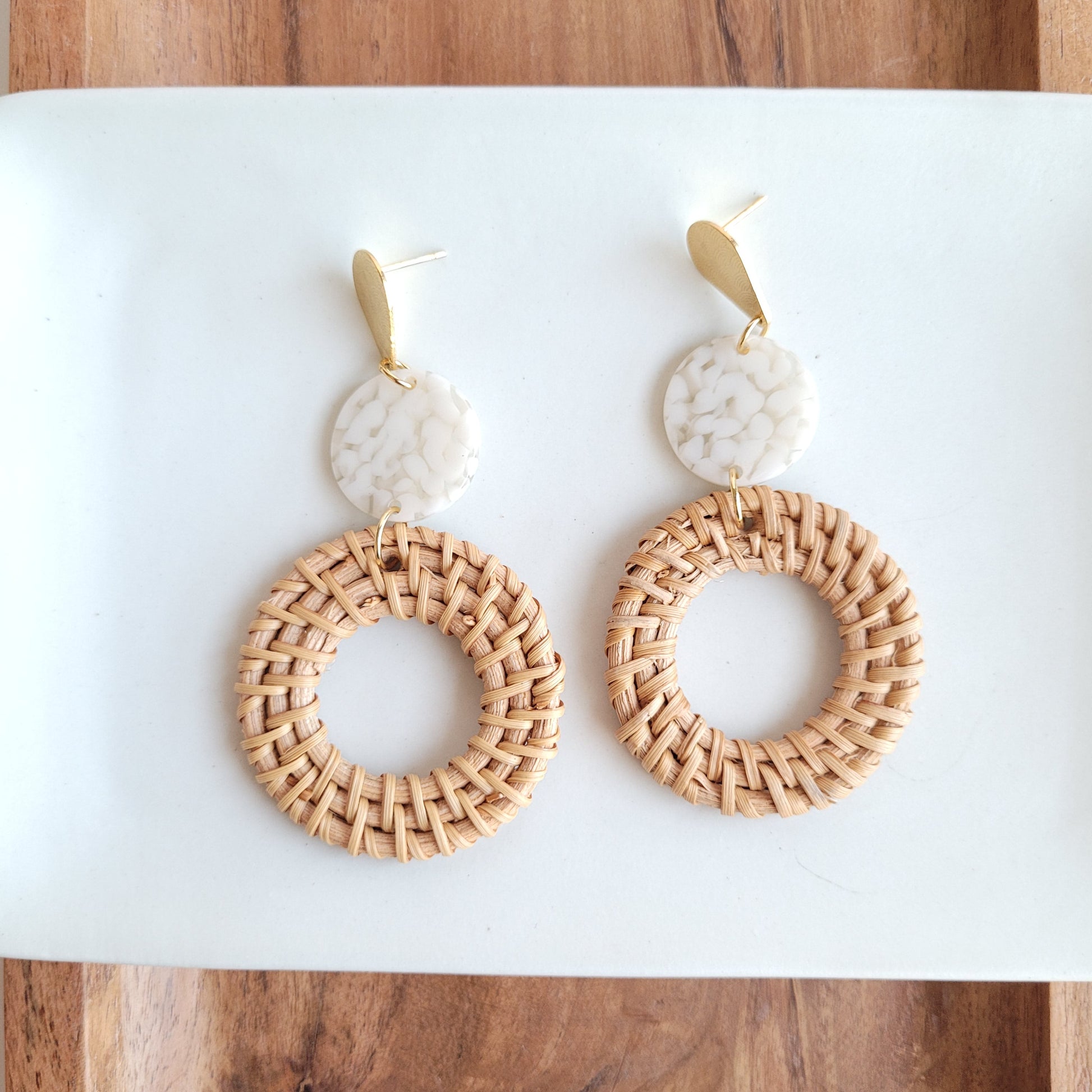 Bring a little bit of resort wear glam to your everyday style with these lightweight, rattan earrings. We've hooked you up with the perfect statement earrings with a trendy twist on our classic rattan look. The gold accents and acrylic only add to their luxurious feel and make them perfect for pairing with any outfit.