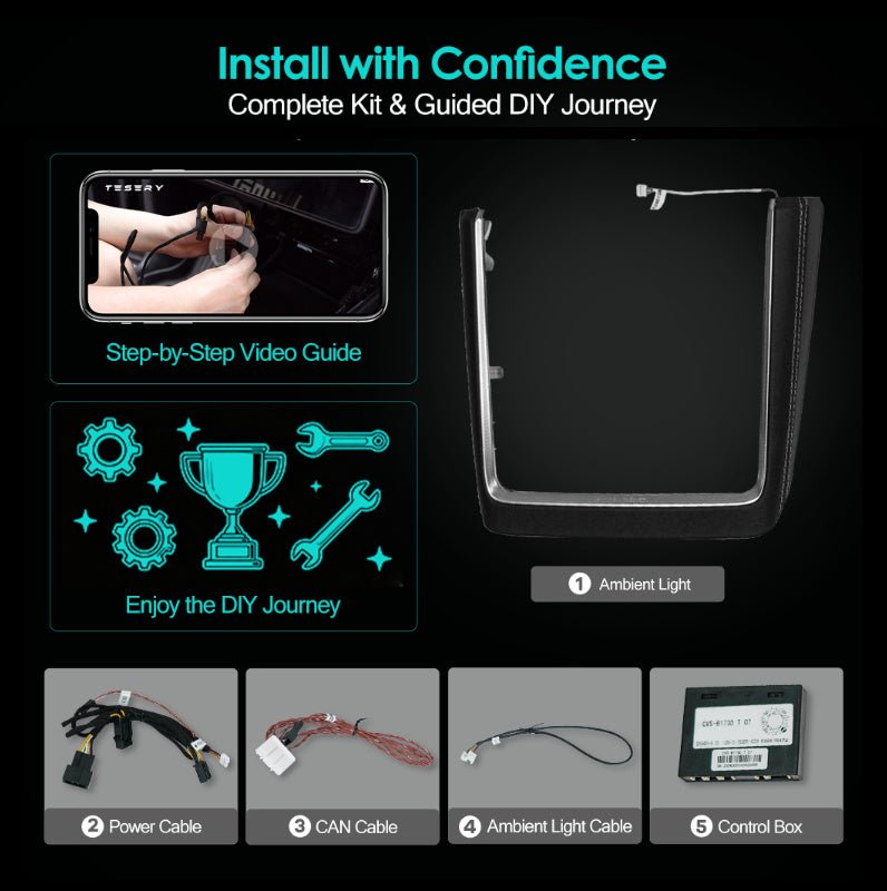 Take full control of your lighting directly through your Tesla's OEM screen. Easily match colors with your existing ambient lights for a perfectly synced, factory-like look.