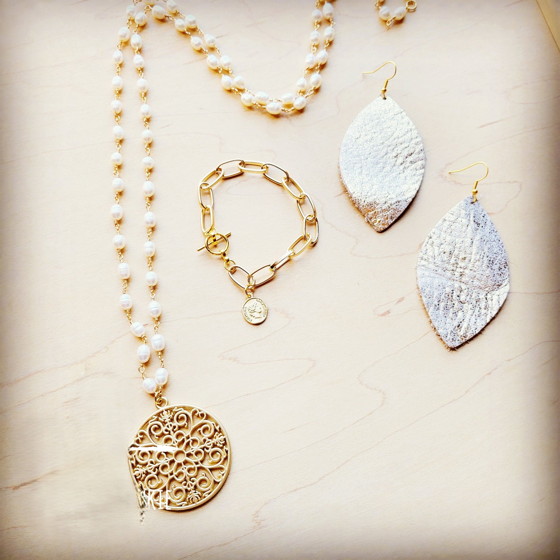 Increase quantity for **Leather Oval Earring-Heavy Metal White 209t