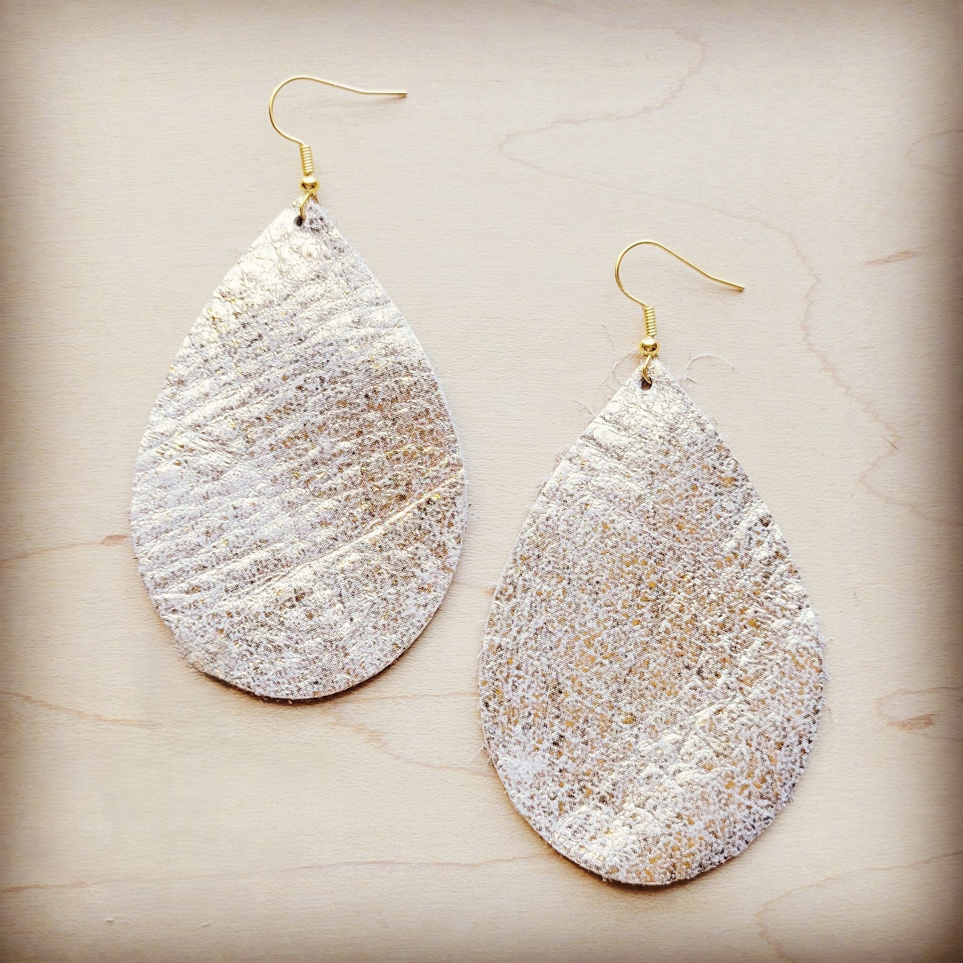 **Leather Teardrop Earring-Heavy Metal White 210j
