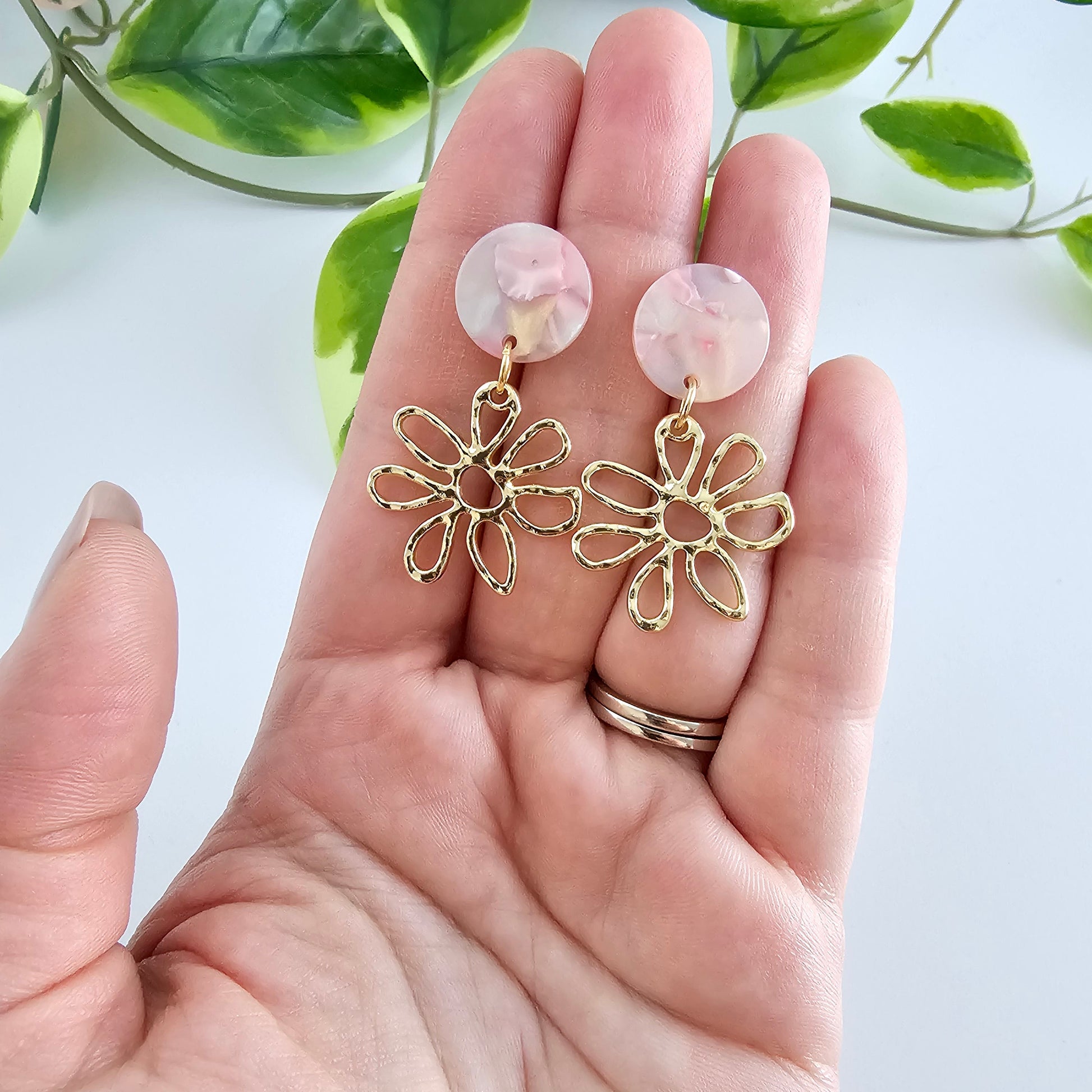 Introducing the Lily Earrings in Iridescent Pastel! These dainty gold daisy earrings are the perfect addition to any outfit. With their acrylic stud, they are both lightweight and stylish. Get ready to bloom with these adorable earrings!