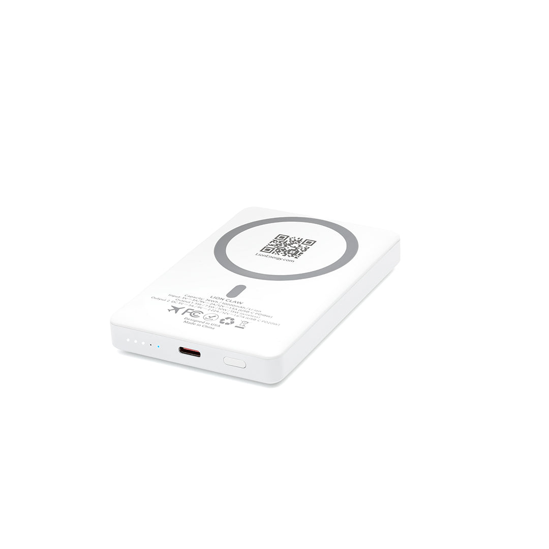 The Lion Claw™ is a magnetic power bank that wirelessly charges compatible phones. Snap it to your phone’s MagSafe back for instant charging, or use the USB port for any device that needs USB power delivery.