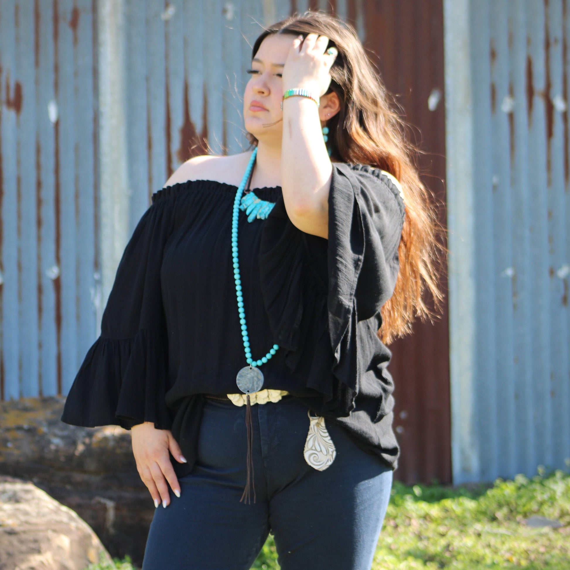 This turquoise stone necklace is the perfect item to layer with shorter necklaces