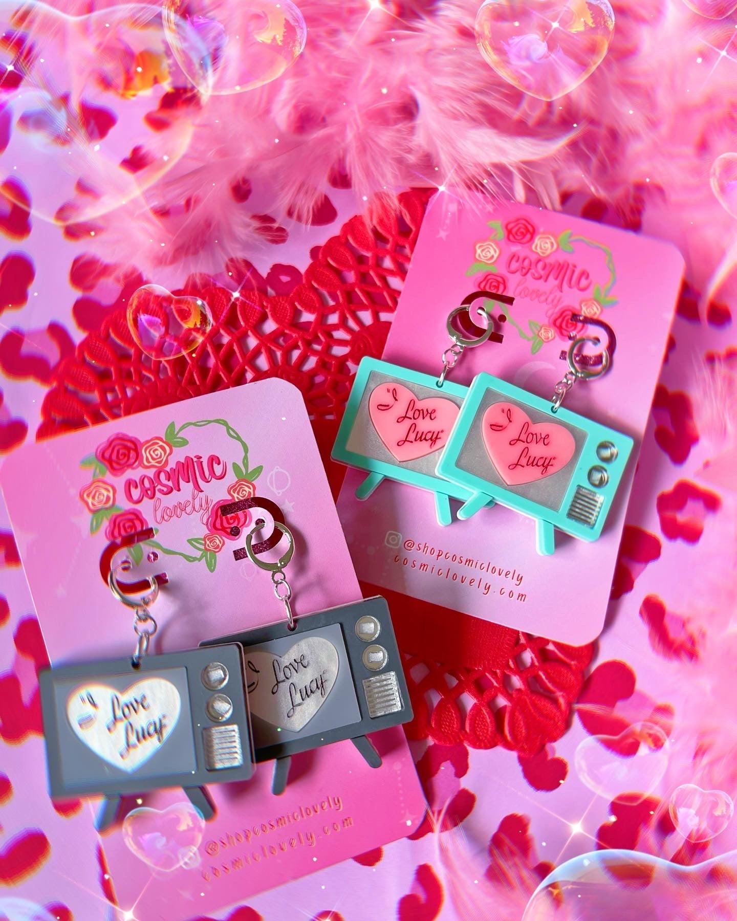This listing is for ONE Pair of Lucy l'm Home Earrings . Leverbacks are hypoallergenic. If you wish to replace with hooks or hoops please leave me a note at checkout. Earrings are approximately 1.5"