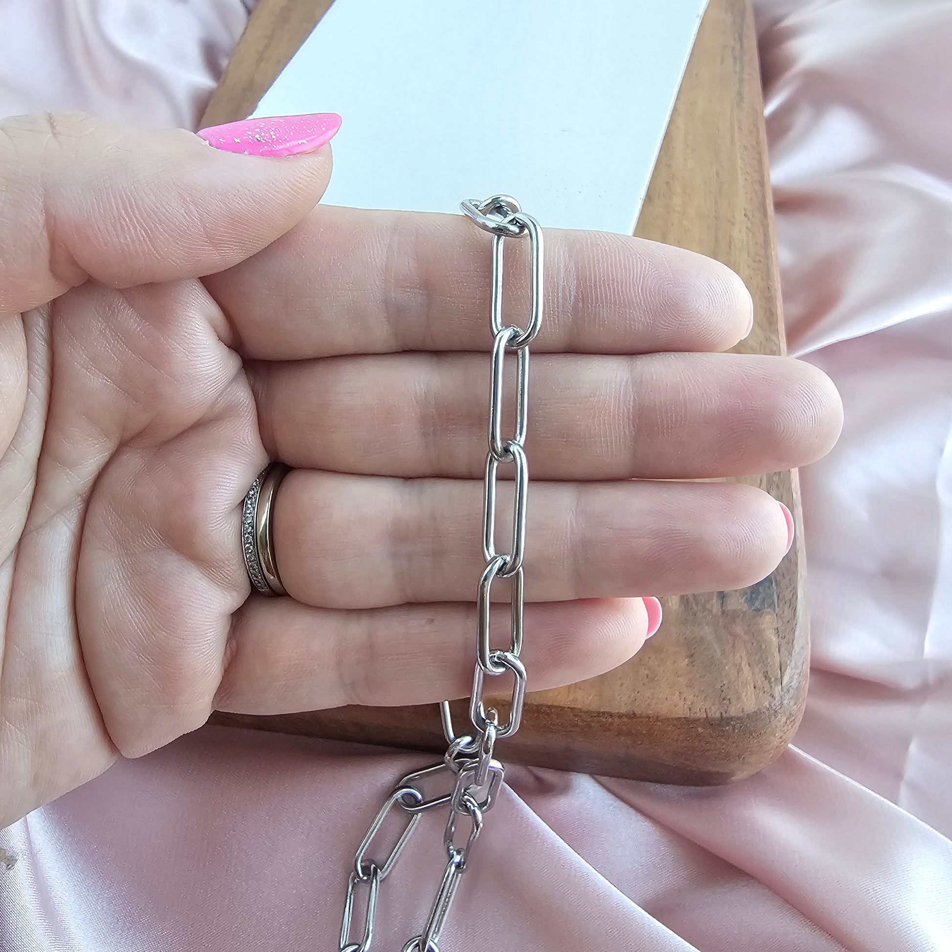 Introducing our all-new Luxe Silver Chunky Paper ClipChain – your stylish sidekick for every occasion! Whether you're rocking your favorite jeans and tee combo or glamming up for a night out, this chain has got your back. Versatility is the name of the game here. Whether you're a fan of minimalism or love a layered look, this necklaceis your ultimate styling canvas.