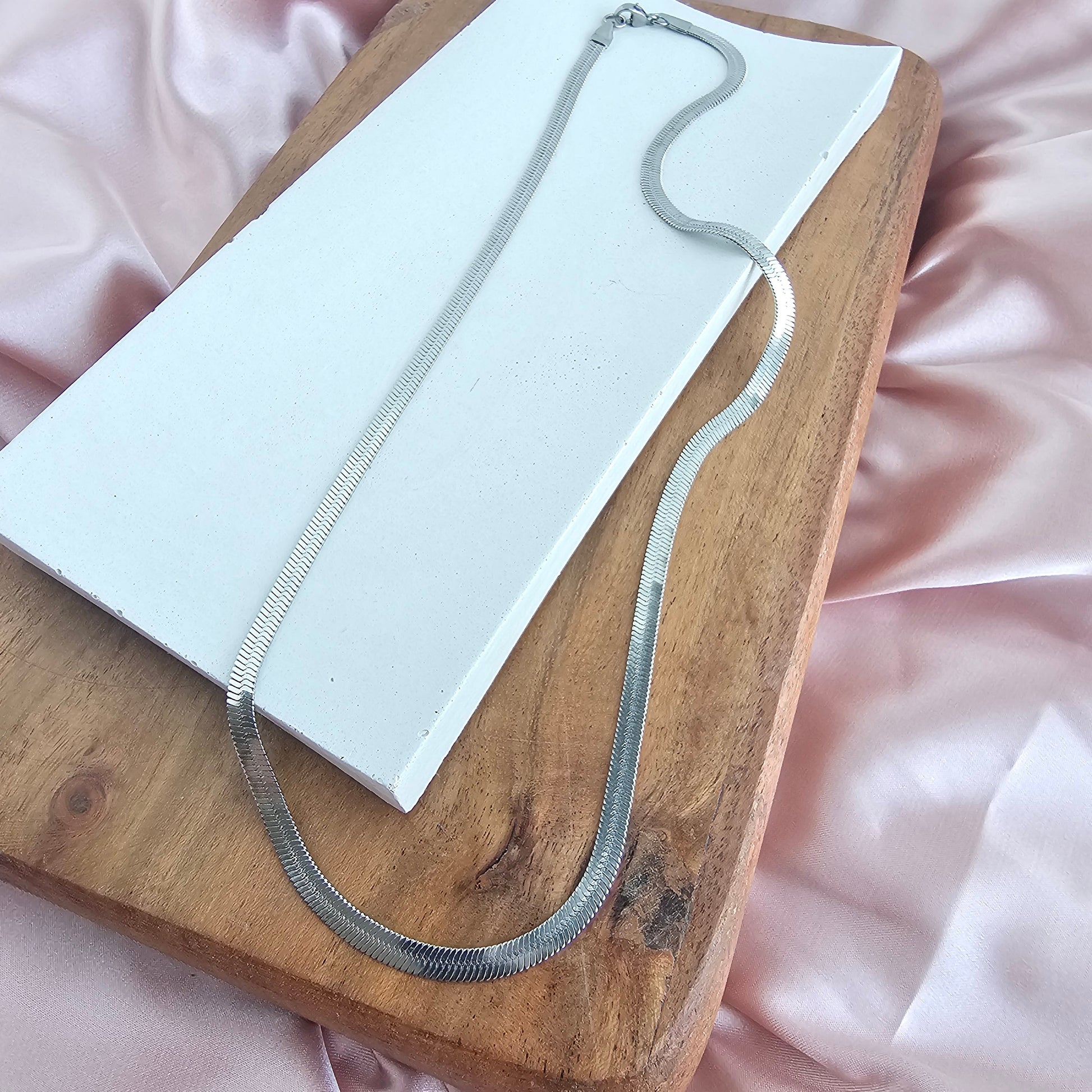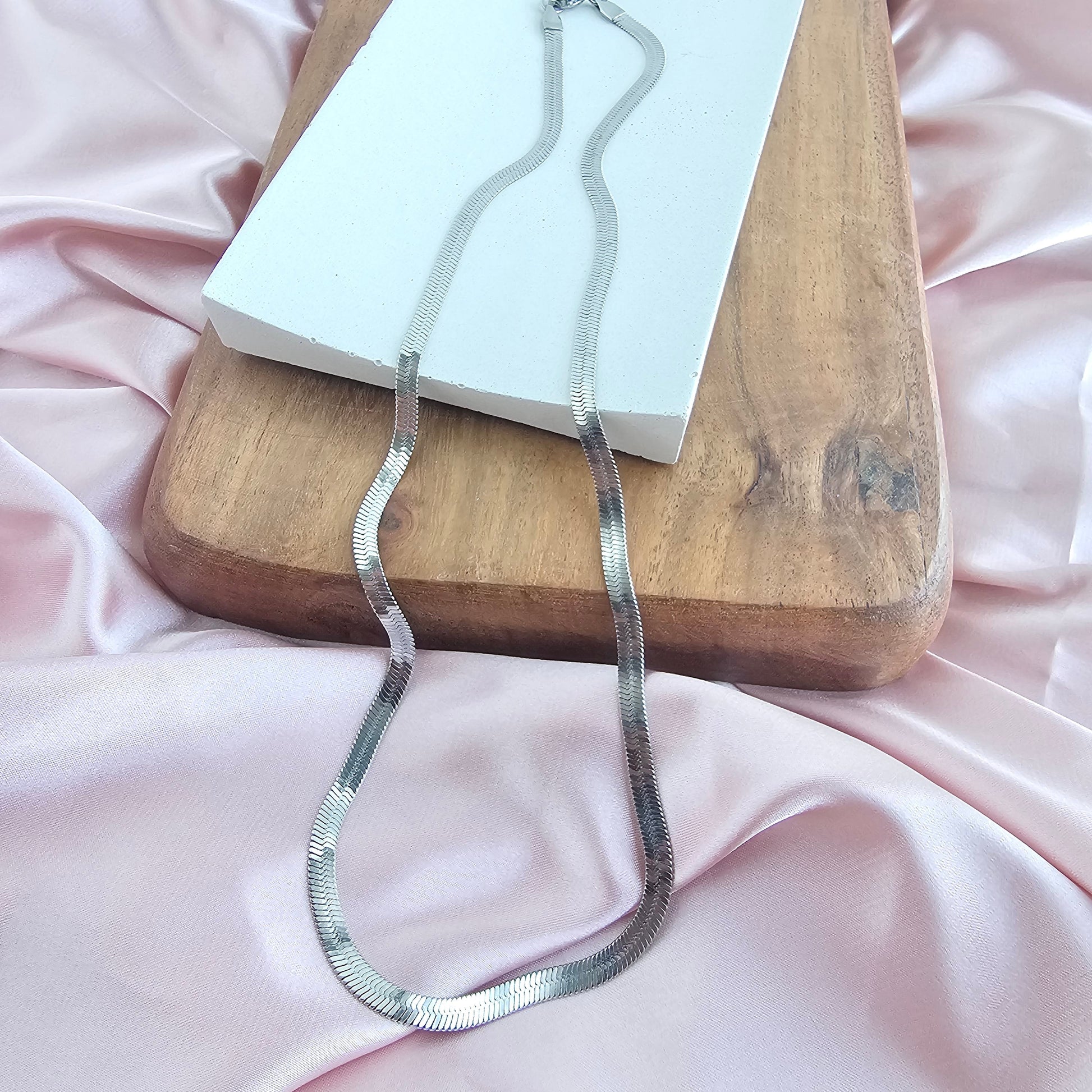Introducing our all-new Luxe Silver Herringbone Chain – your stylish sidekick for every occasion! Whether you're rocking your favorite jeans and tee combo or glamming up for a night out, this chain has got your back. Versatility is the name of the game here. Whether you're a fan of minimalism or love a layered look, this necklaceis your ultimate styling canvas.
