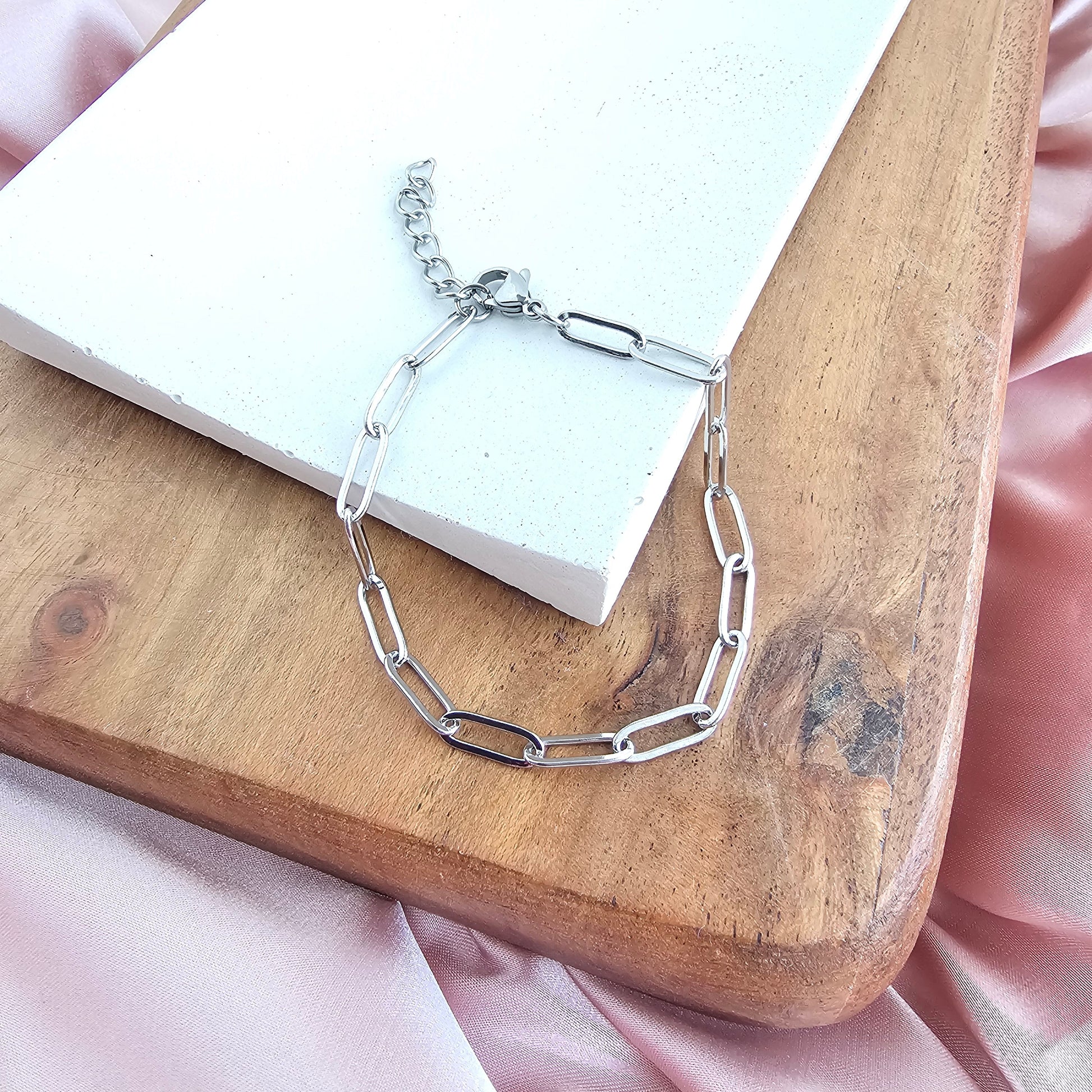 Introducing our all-new Luxe Silver Paper Clip Bracelet – your stylish sidekick for every occasion! Whether you're rocking your favorite jeans and tee combo or glamming up for a night out, this bracelet has got your back. Versatility is the name of the game here. Whether you're a fan of minimalism or love a layered look, this bracelet is your ultimate styling canvas.