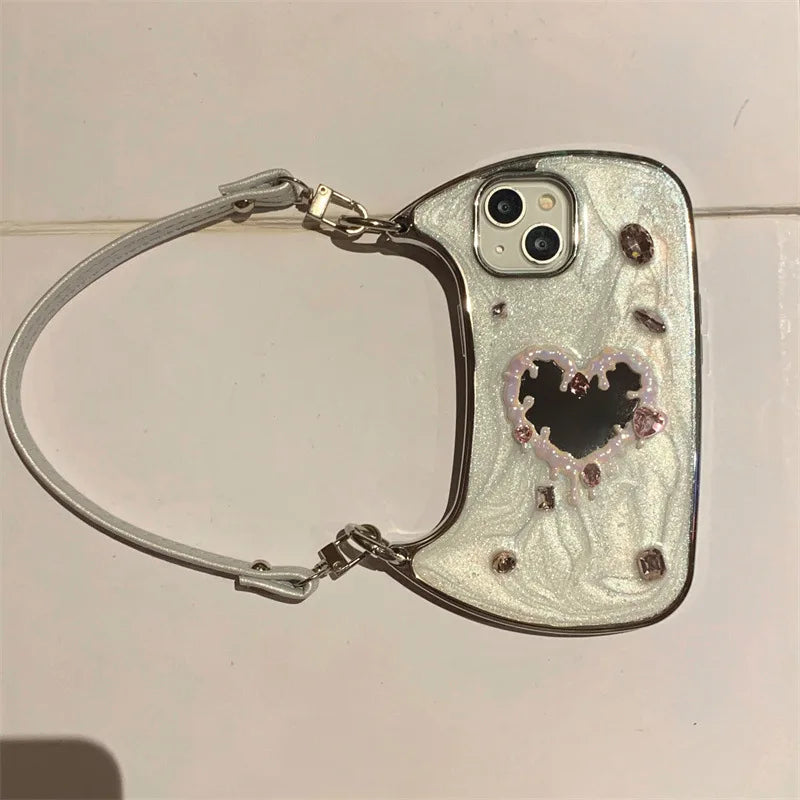 Elevate your iPhone with this stunning luxury phone case that combines elegance and protection. Featuring a mesmerizing 3D glitter design adorned with sparkling gemstones and a romantic love heart motif, this case transforms your device into a fashion statement. The integrated mirror adds practical convenience for on-the-go touch-ups while reflecting light beautifully. Crafted with premium materials, it delivers reliable protection against daily wear and tear without compromising style. Perfect for those who refuse to settle for ordinary—make your phone as extraordinary as you are.