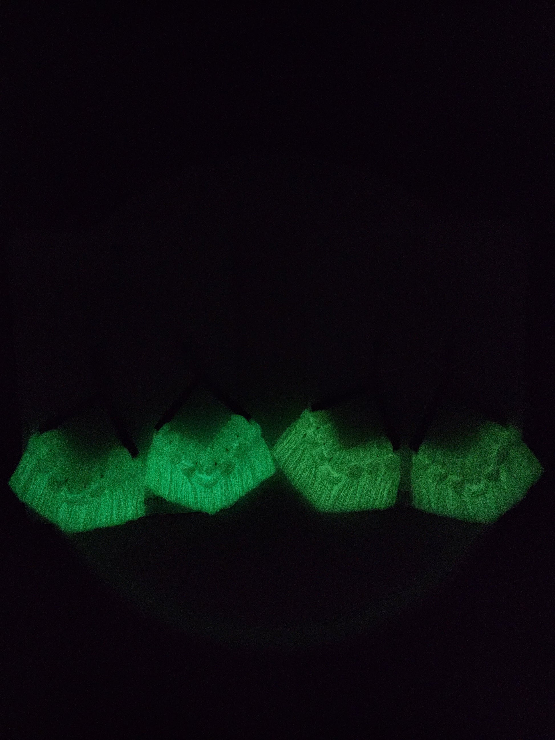 Macrame fringe earrings that glow in the dark. Great for Halloween events, fun parties or just because!Handmade with 100% cotton cord, wooden earring blanks, and bronze, hypoallergenic earring hooks.