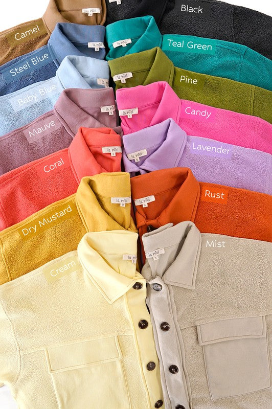 Daily oversized lightweight jacket with button up front, collared neckline, long sleeves with button cuffs and exaggerated front patch pockets