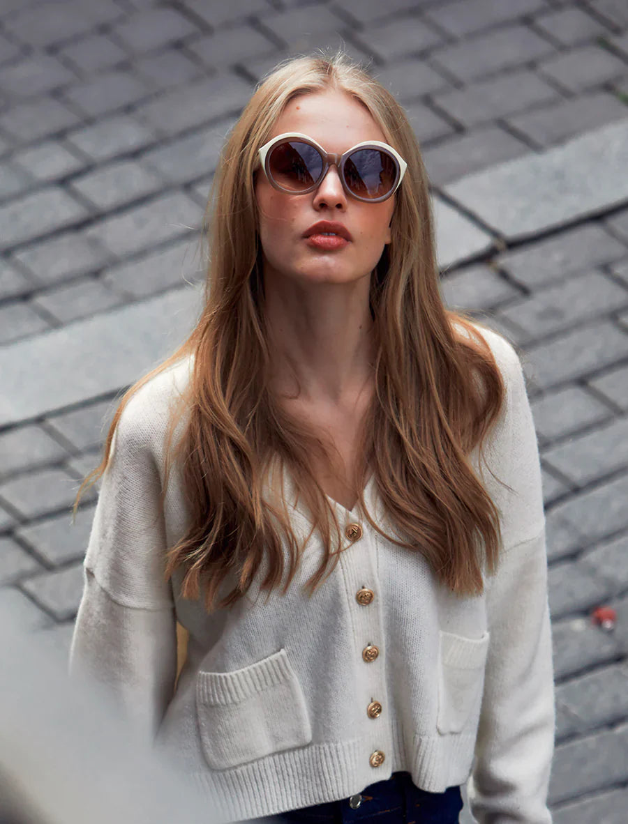 With rounded shapes and inspired by the 60s, Melville is a model that evokes those women who, through fashion, music, or art, laid the foundations of the style of one of the most eclectic and significant decades of the 20th century. The subtle play of colors does not go unnoticed: fronts in varied tones, in contrast with the temples, and the famous butterflies in neutral tones that accentuate the oval shape of the glasses. A model full of details that exude femininity and has arrived ready to bring sweetness to any outfit.