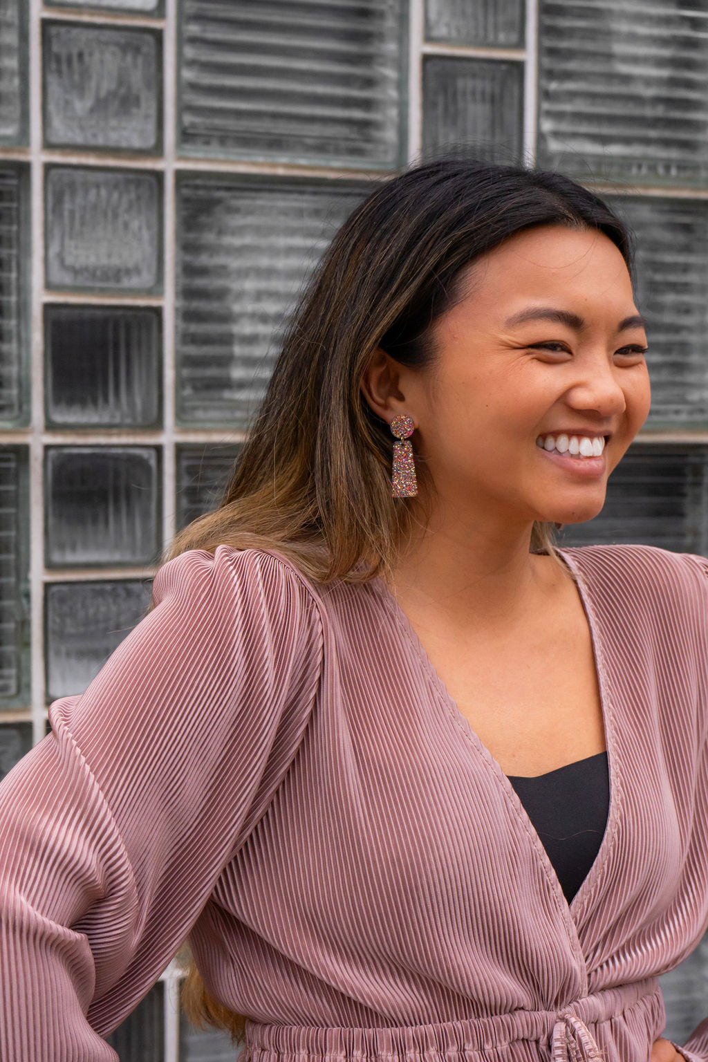 Add a pop of shimmer to your look with these rainbow glitter earrings with matching posts and charms!