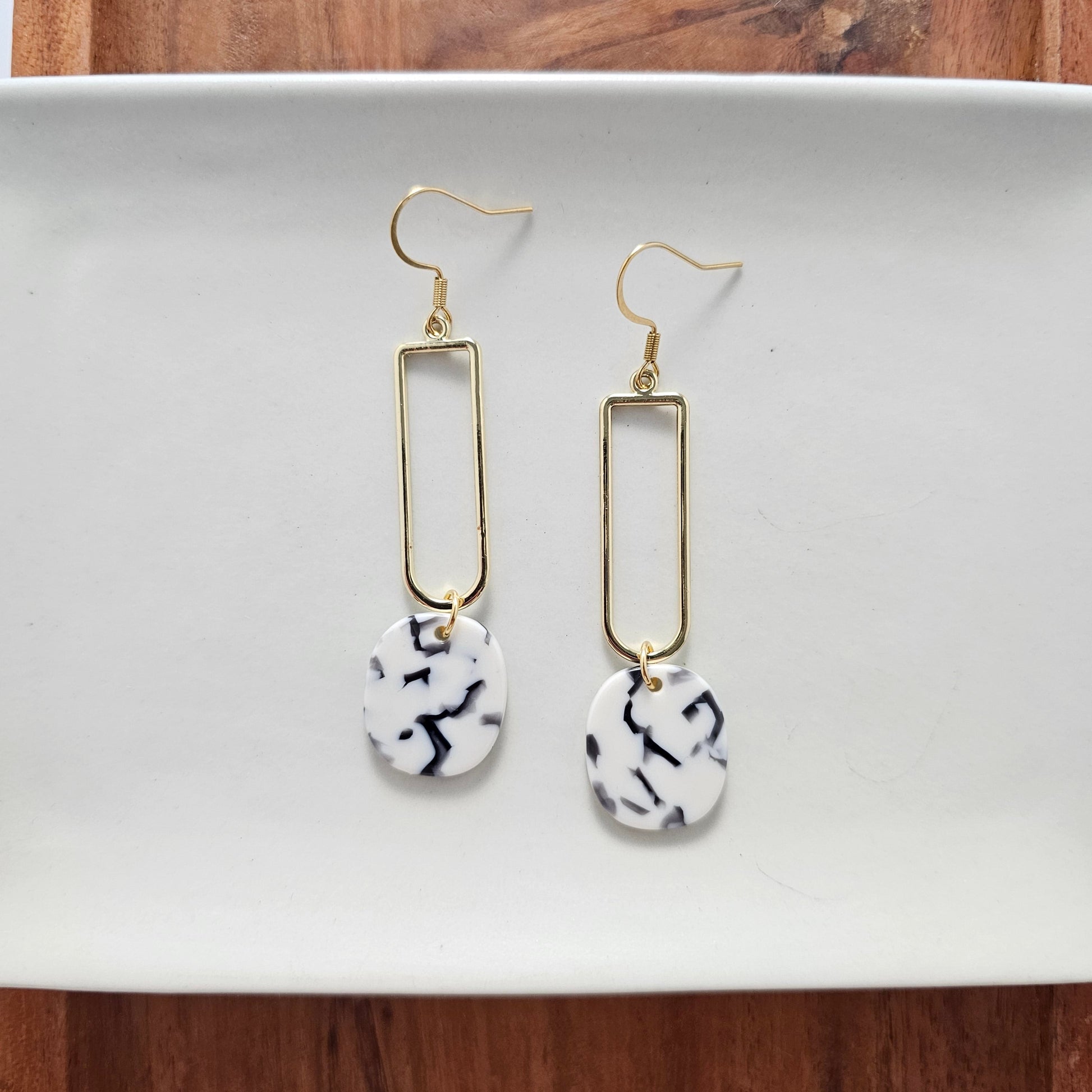 Add a touch of fun and playfulness to your outfit with our Mila Earrings! These drop style dangle earrings feature a unique marble accent charm. Stand out from the crowd and add a twist to your everyday look.