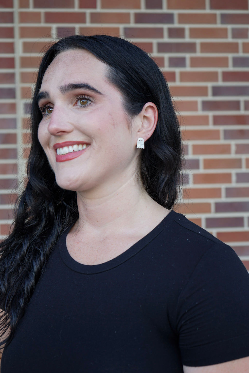 Get ready for the spooky season with our new Mini Ghost Studs! These charming earrings are the perfect way to add a playful touch of Halloween spirit to any outfit. Crafted from lightweight shimmer acrylic, they catch the light with a subtle sparkle, making them a fun and festive accessory for all your fall activities.