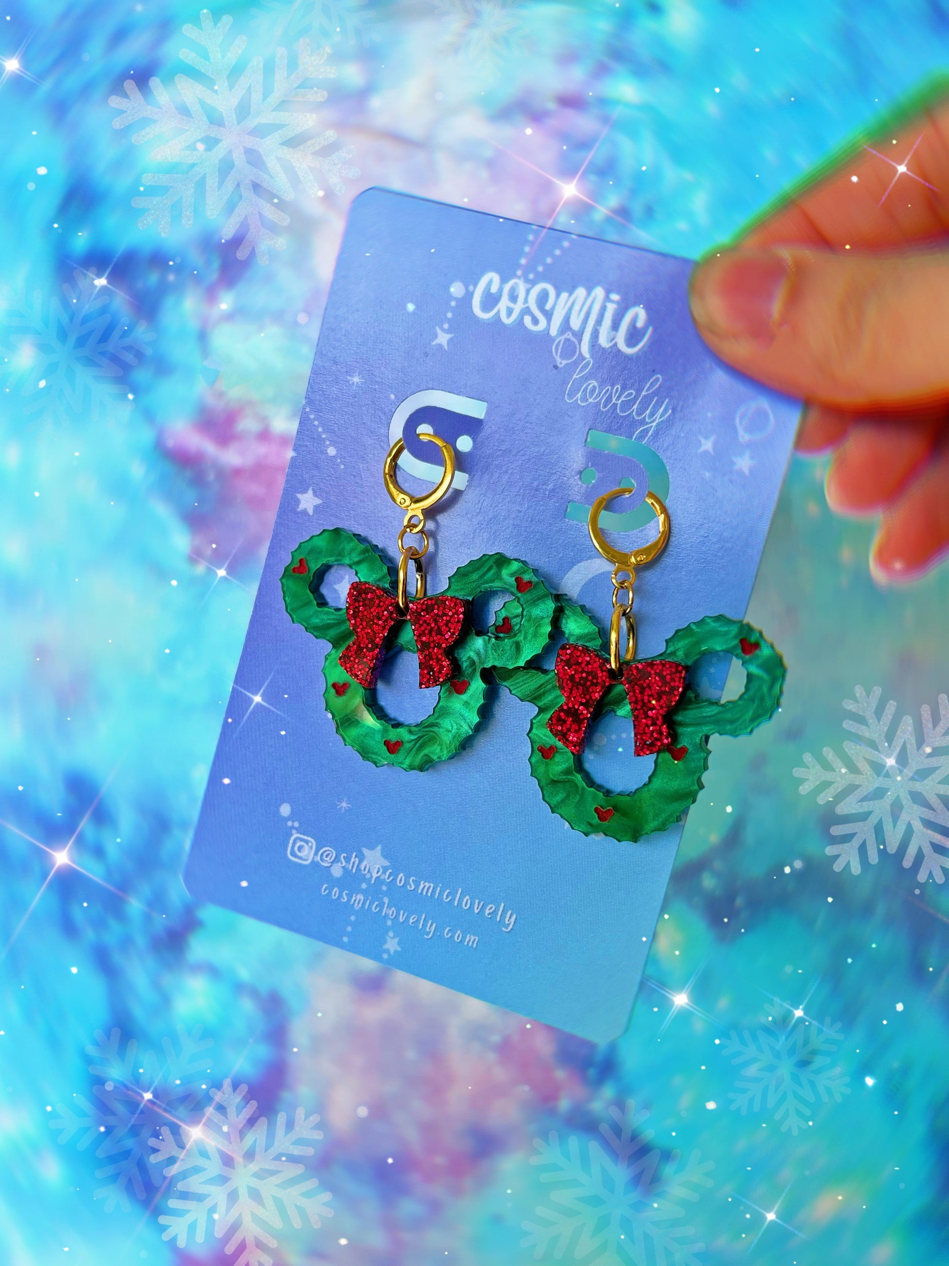 This listing is for ONE Pair of Mouse Christmas Wreath Earrings.