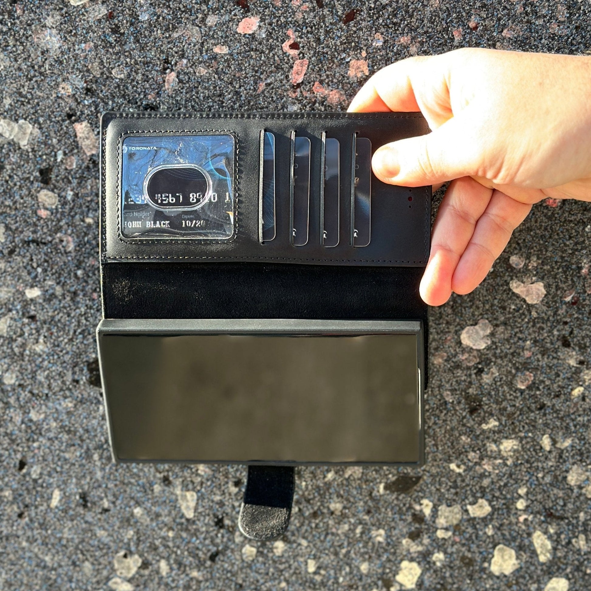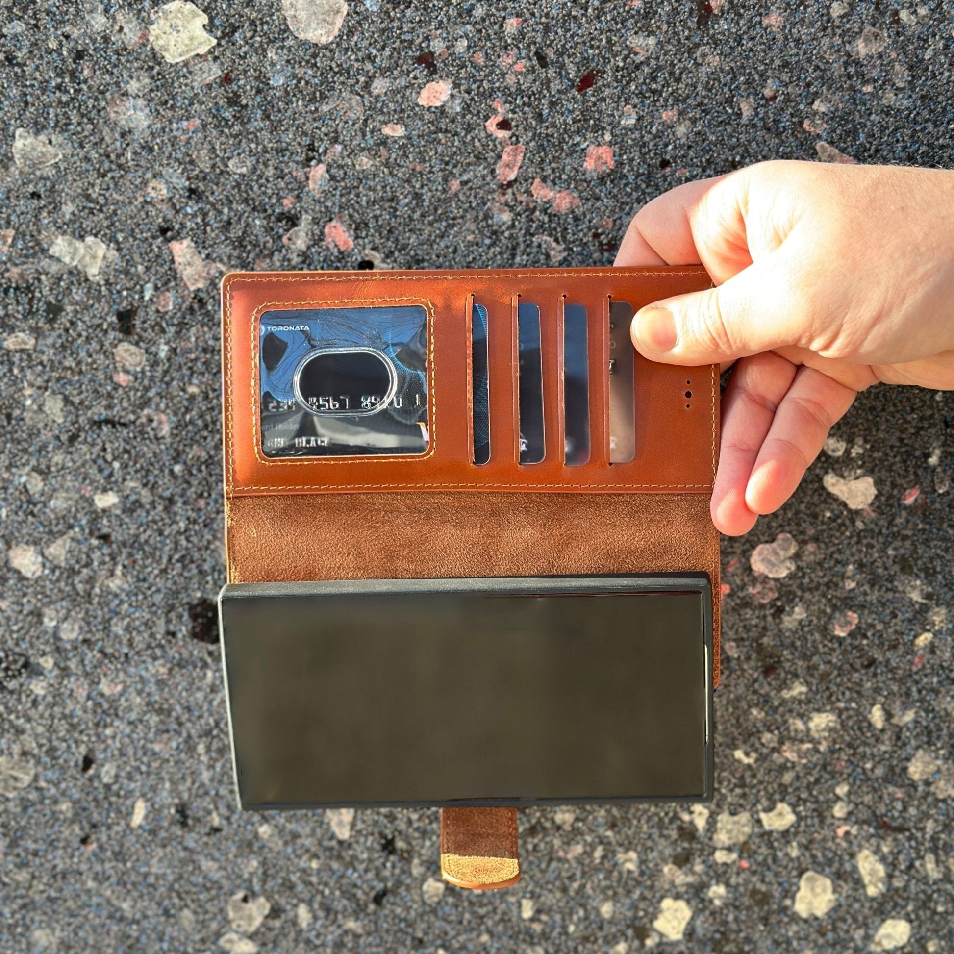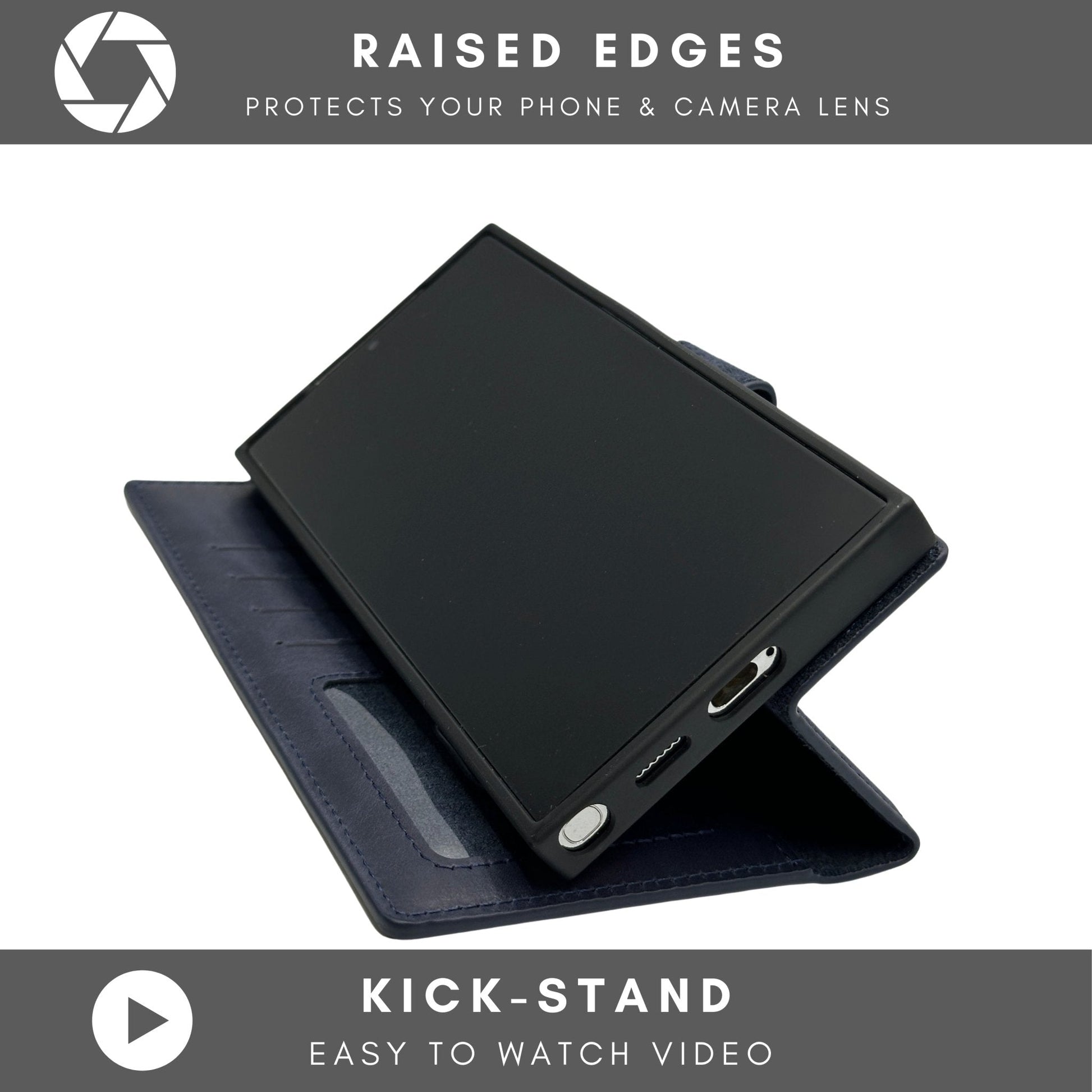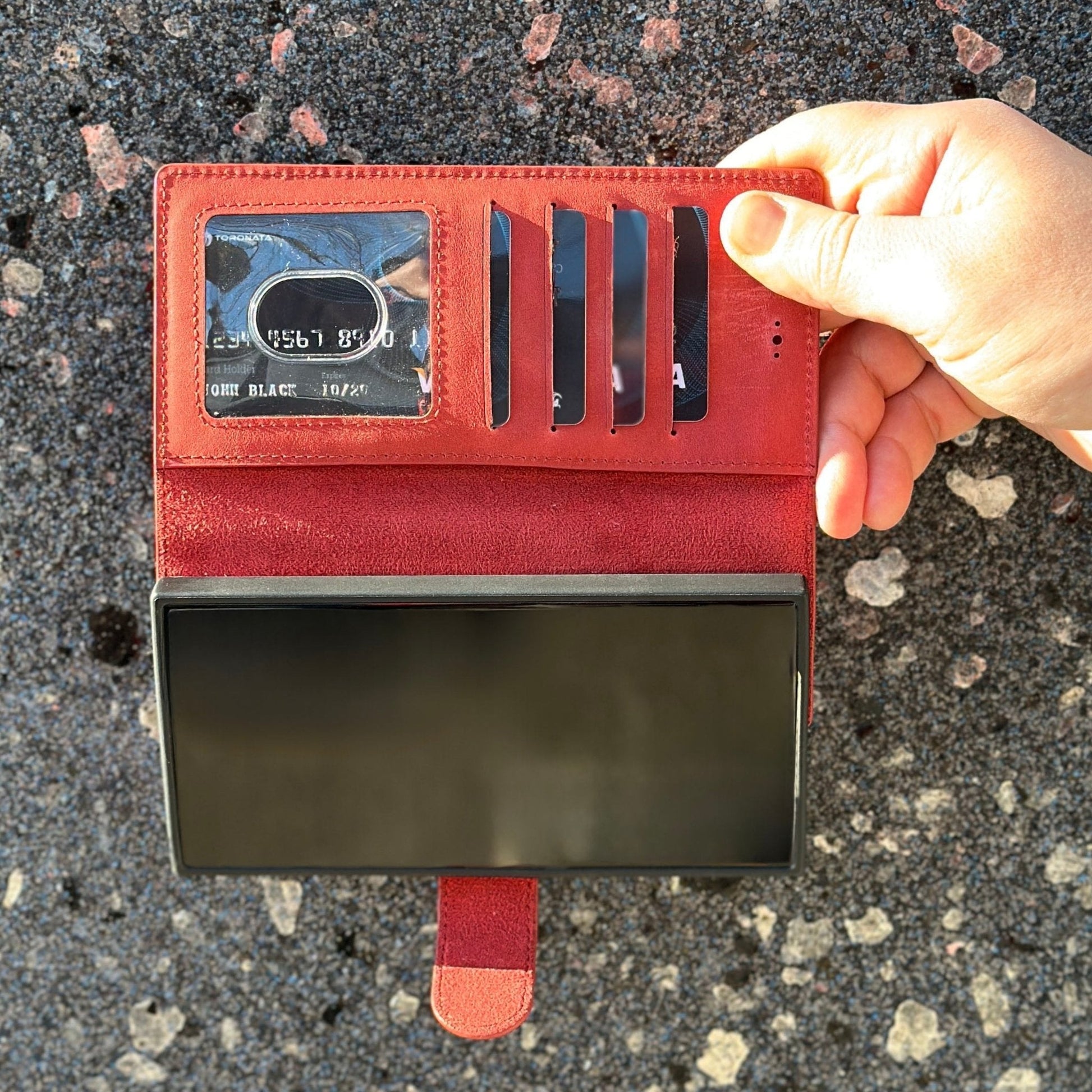 The TORONATA Nevada S24 Ultra leather wallet case was designed with the perfect balance between durability and elegance in mind, allowing you to enjoy the full features of your new smartphone without risking unwanted damage. Made with genuine cowhide leather, available in chic colors, with an anti-scratch anti-drop design that protects the device, plus 4 functional card slots and RFID technology, this S24 phone case converts into a kickstand, making it ideal for hands-free video calls, movies, and videos!