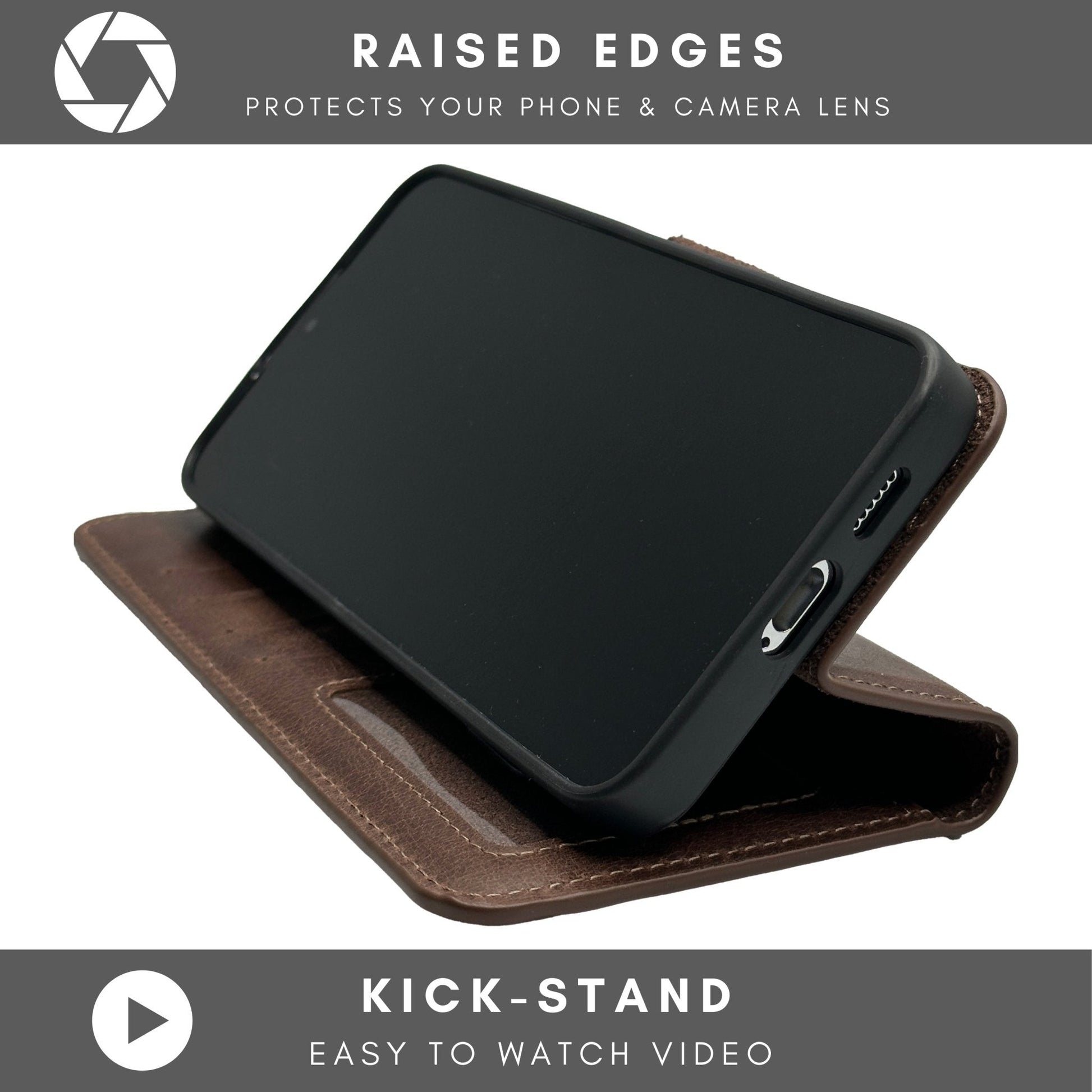The TORONATA Nevada S24 leather wallet case was designed with the perfect balance between durability and elegance in mind, allowing you to enjoy the full features of your new smartphone without risking unwanted damage. Made with genuine cowhide leather, available in chic colors, with an anti-scratch anti-drop design that protects the device, 4 functional card slots and RFID technology, this S24 phone case converts into a kickstand, making ideal for hands-free video calls, movies and videos!