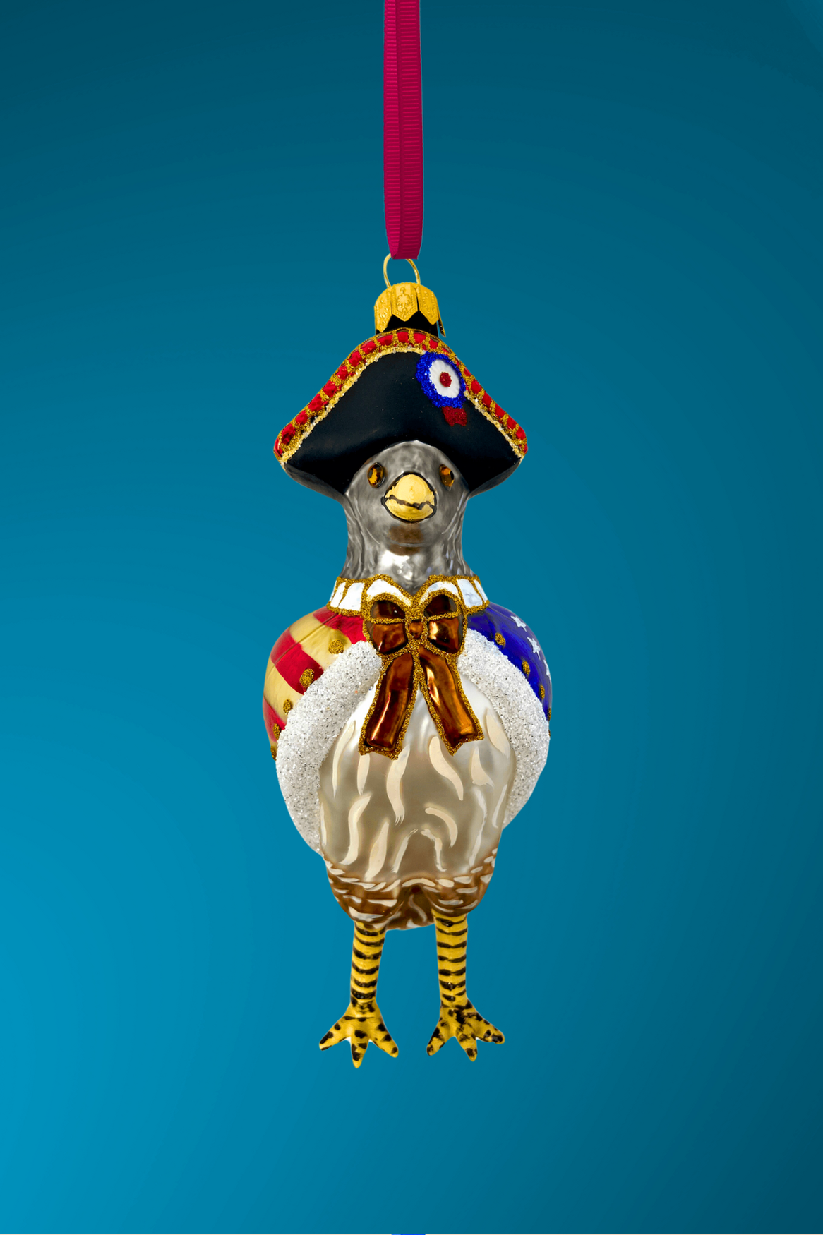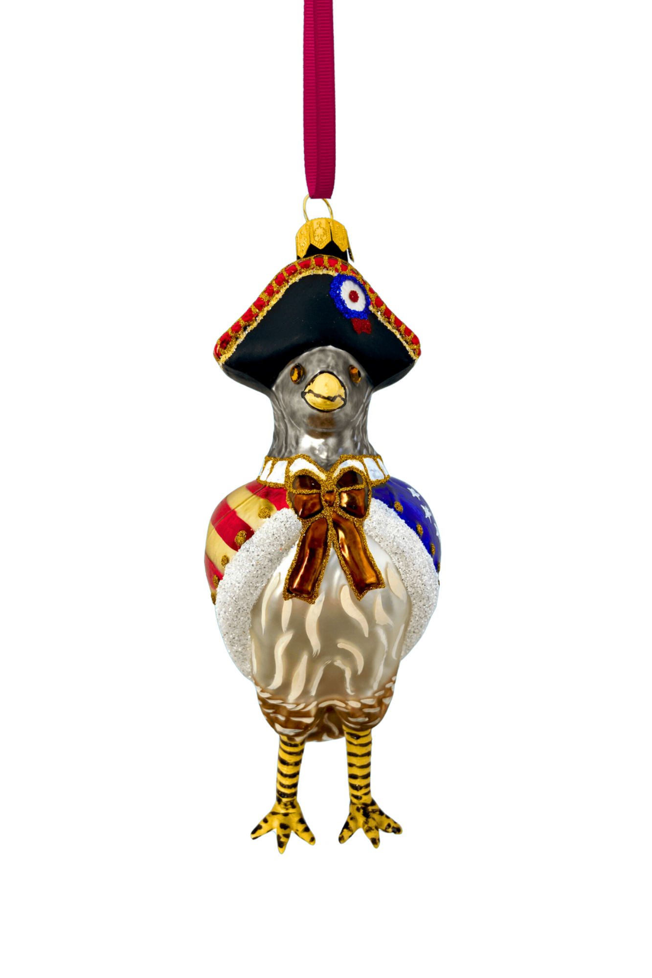 With a chest wrapped in the folds of the American flag, this dove doesn’t just deliver peace—she arrives bearing a message of enduring hope. Her bicorne hat is Napoleonic, her expression pure poetry.