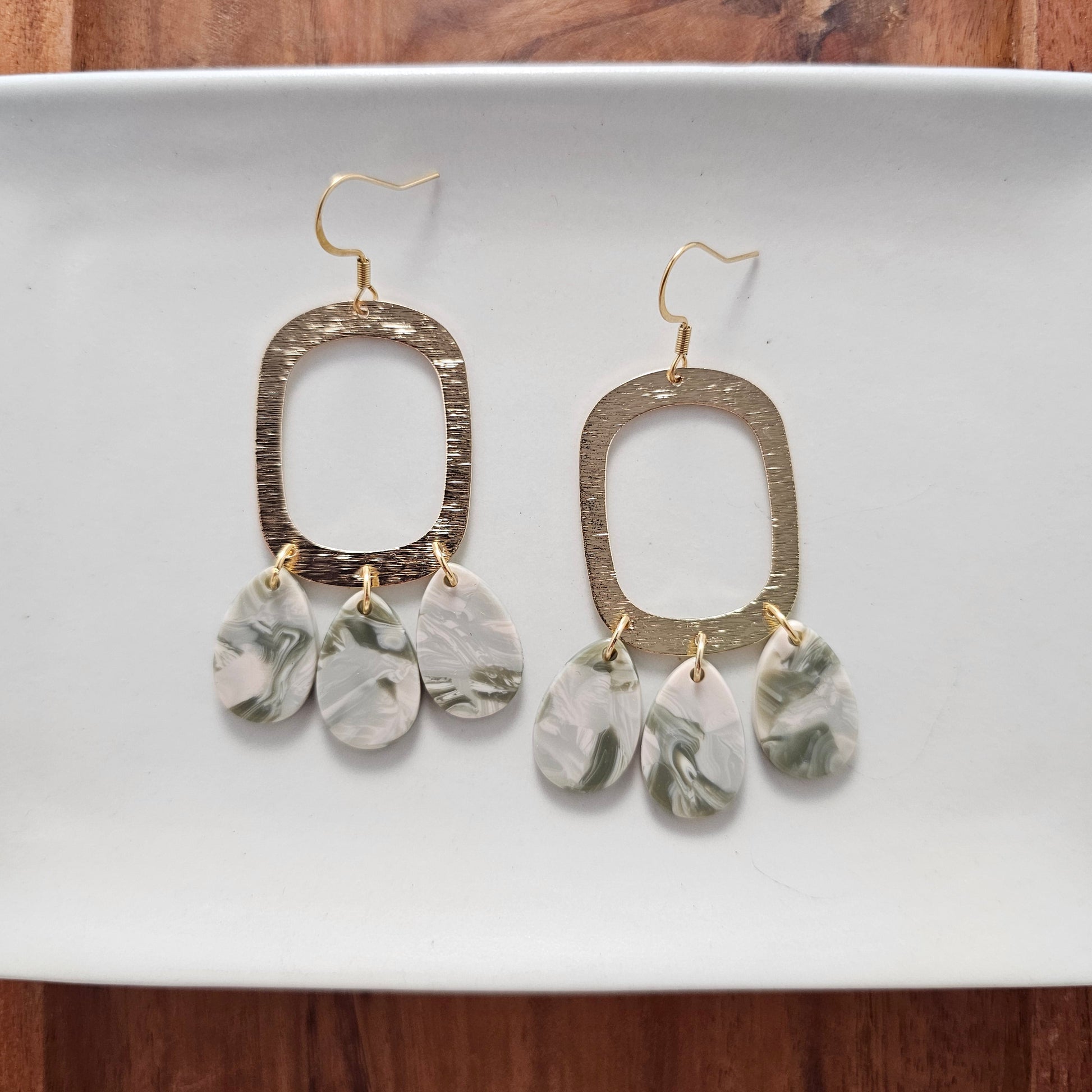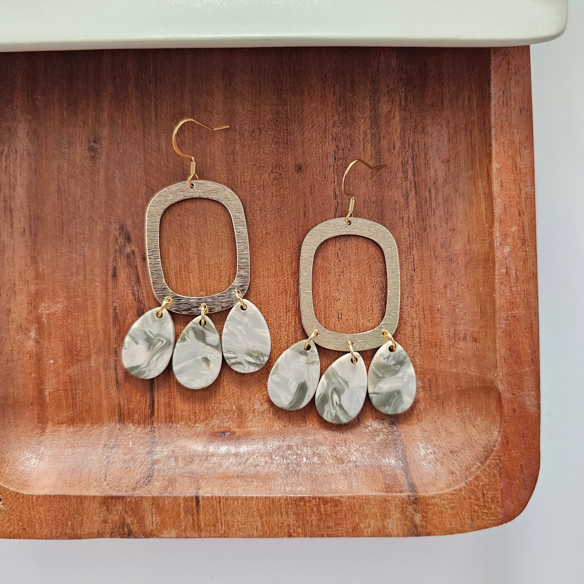 Make a statement with the Ophelia Earrings! These bold and playful earrings feature teardrop acrylic charms in an earthy sage green. Get ready to turn heads and add a pop of color to any outfit.