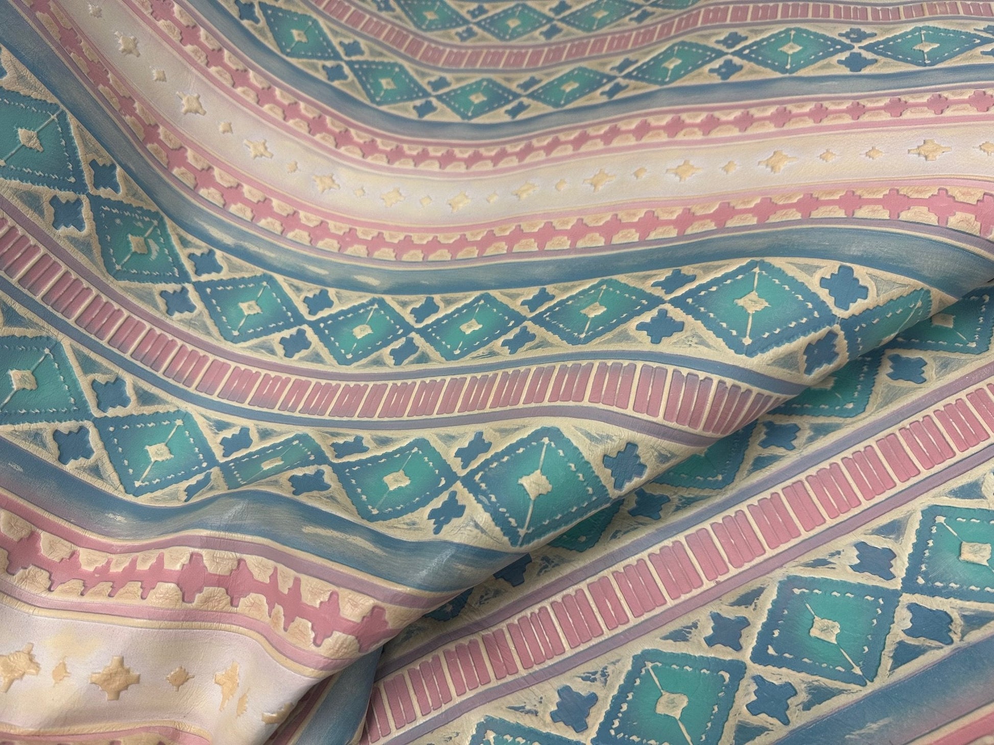 For all Navajo prints, view the last photo of the entire hide so you can envision the various cuts that could be possible. The hat photos also show various cuts of the Navajo print.