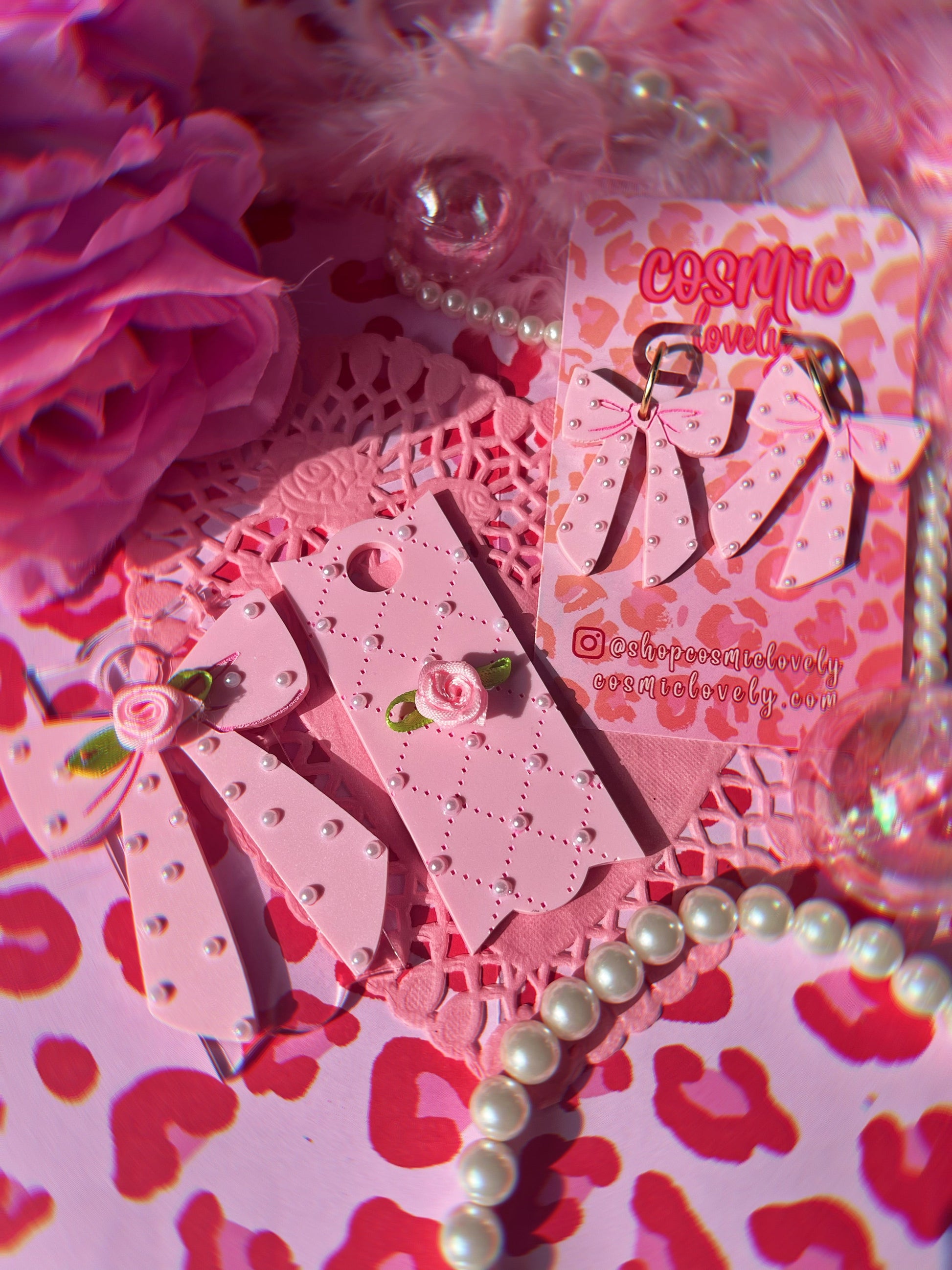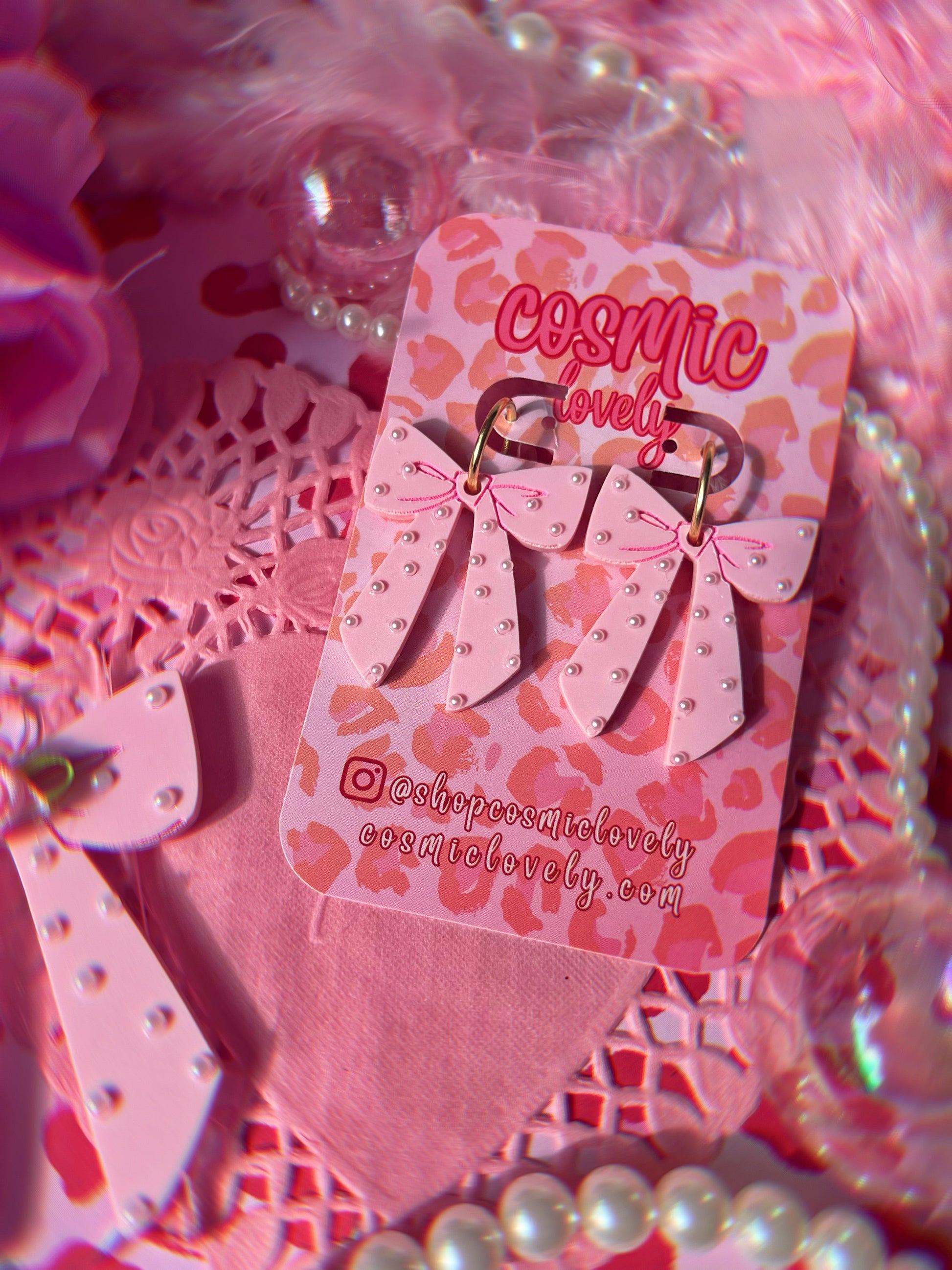 This listing is for ONE Pair of Pastel Pink Pearl Coquette Bow Earrings