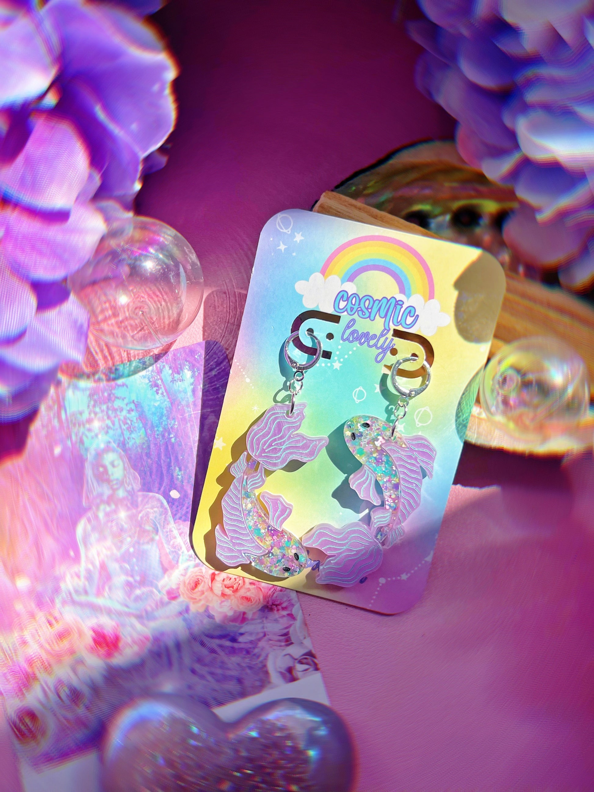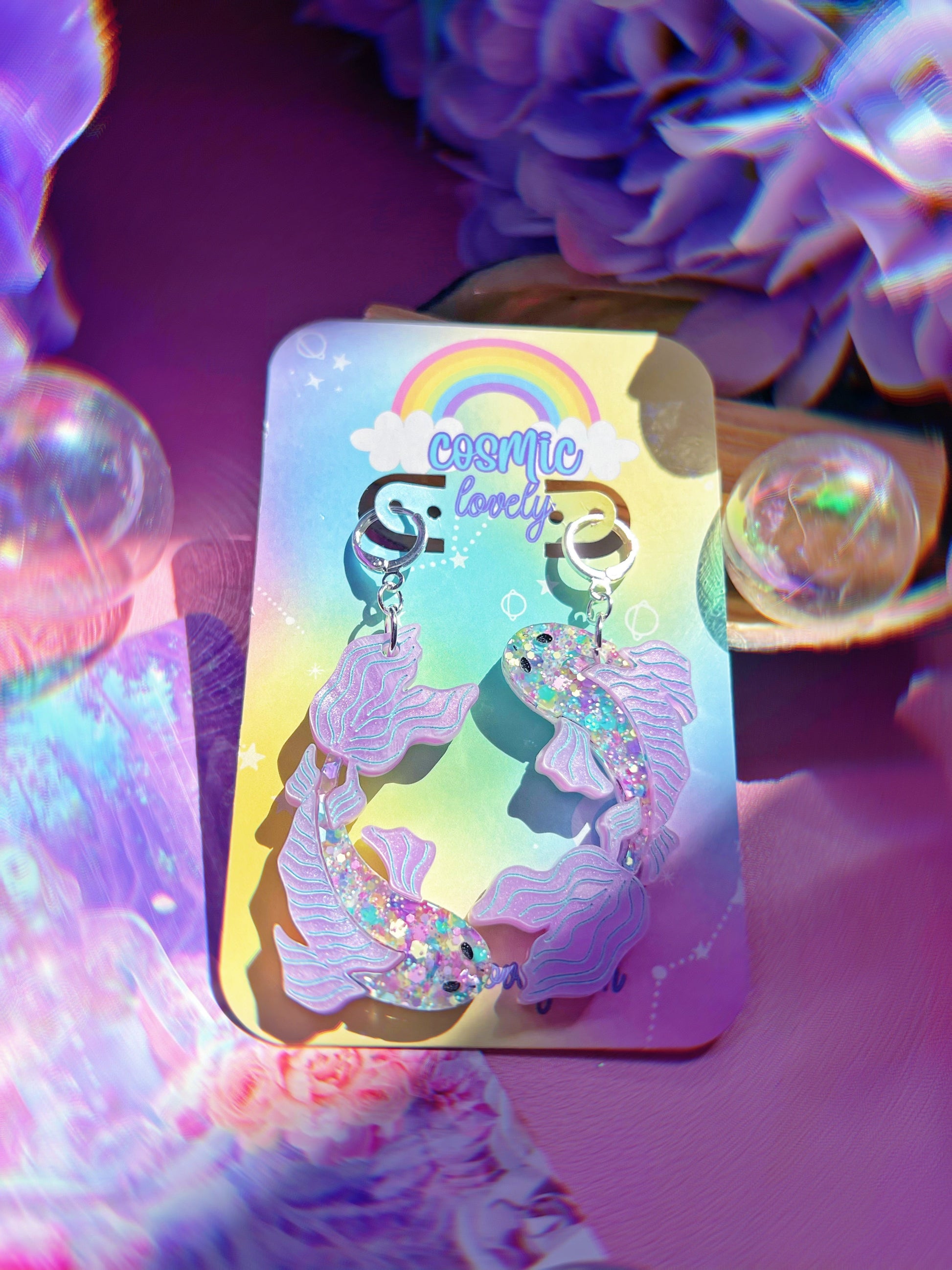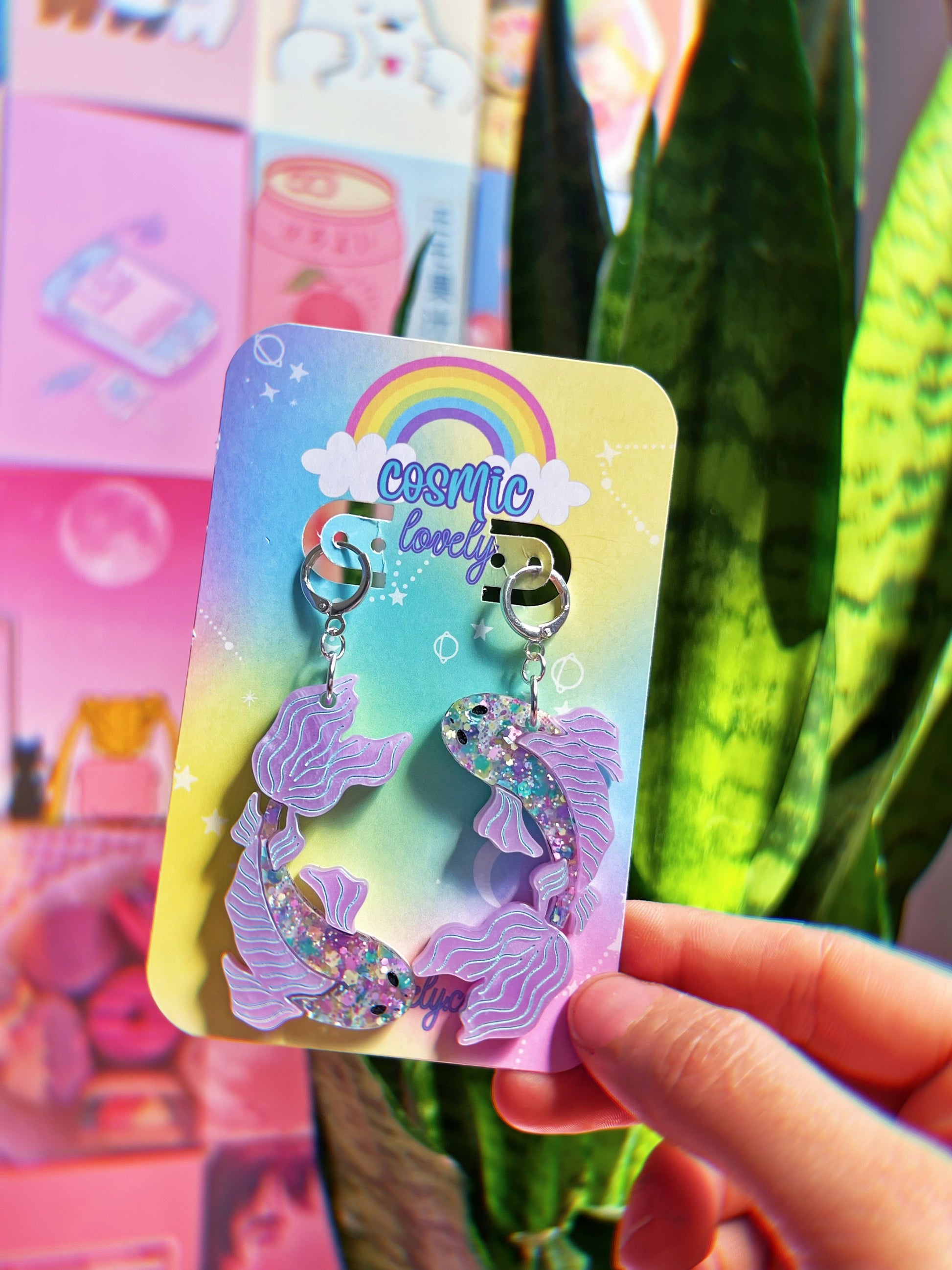 This listing is for ONE Pair of Pastel Spring Koi Fish Earrings. Leverbacks are hypoallergenic. Earrings are approximately 2"