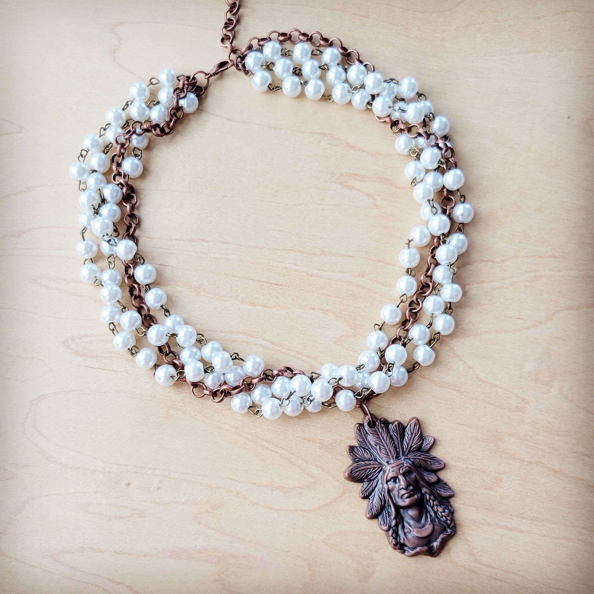 The Jewelry Junkie combines the fun-loving spirit that bohemian jewelry possess and the classic beauty of the pearl in this necklace. The end product is one of our absolute favorite necklaces. Whether you choose to wear it with your favorite jeans and t-shirt or you are looking for the finishing touch to a flowy dress and jean jacket, this necklace is a fantastic option. Layer this collar length necklace with longer pieces or let it stand alone.