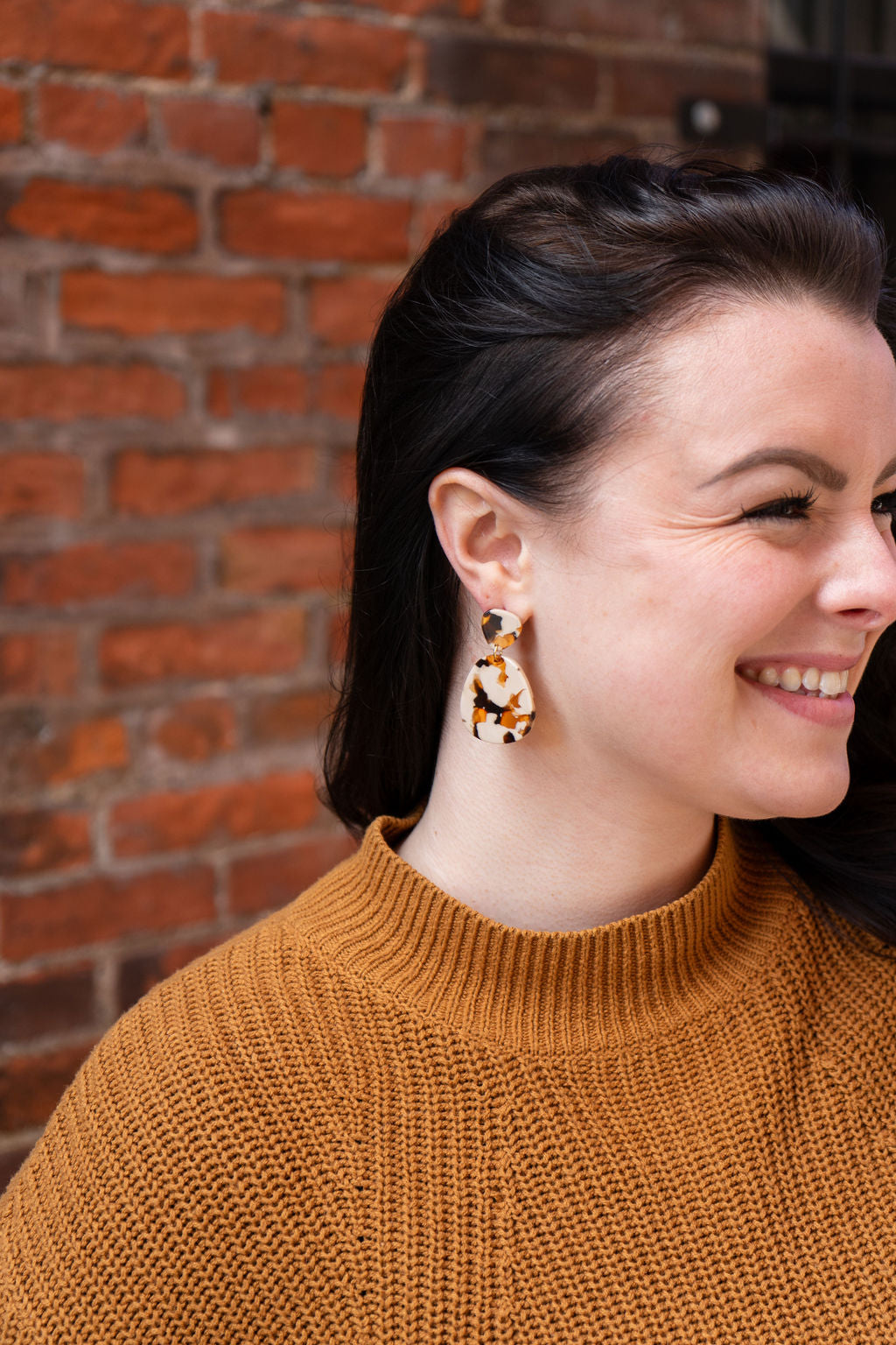The Penelope earrings are a playful accessory featuring matching acrylic posts and charms in a stunning color. These earrings are sure to add a pop of fun to any outfit and are perfect for those who love to stand out with unique and bold jewelry. The matching posts and charms make for a cohesive and polished look. These earrings are sure to make a statement and brighten up any day.