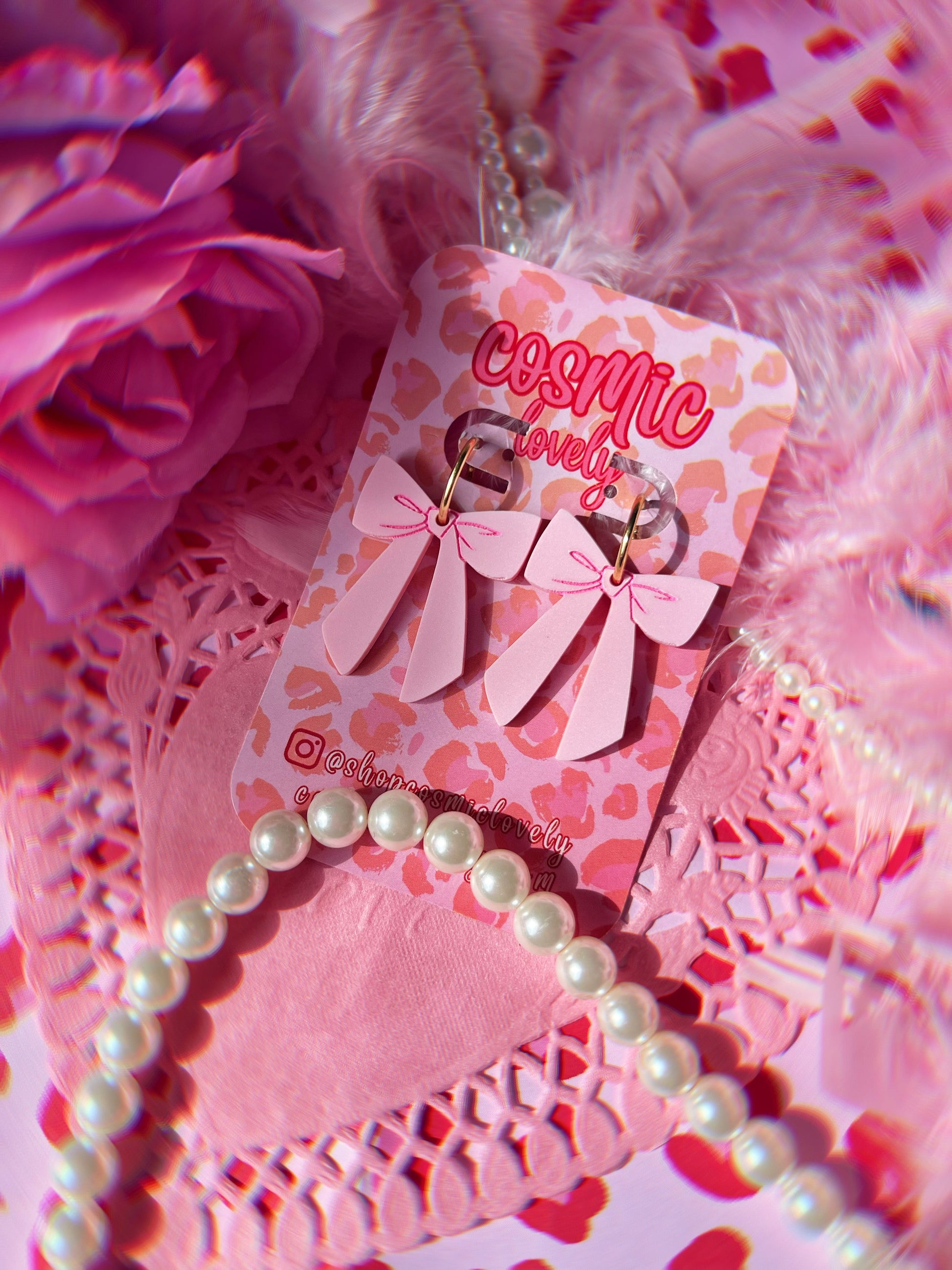 This listing is for ONE Pair of Pink Pastel Small Coquette Bow Earrings