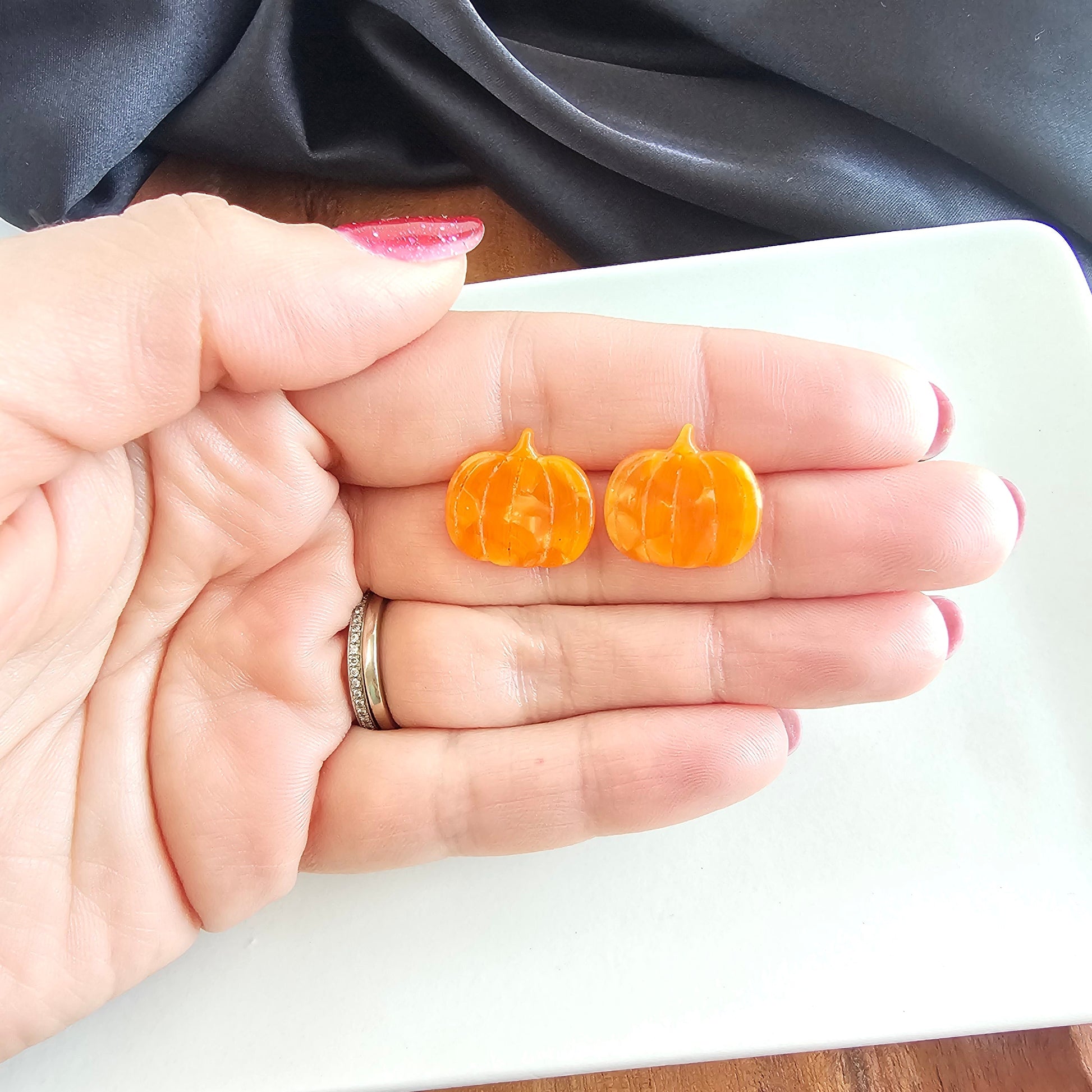 Introducing our Pumpkin Patch Studs, the perfect way to celebrate the cozy season. These charming studs capture the spirit of autumn with their sweet pumpkin shape and bold color. They are perfectly sized to be a standout piece without overwhelming your look, adding a touch of festive cheer to any outfit. Lightweight and comfortable for all-day wear, they're the ultimate accessory for everything from a trip to the pumpkin patch to a cozy night in.