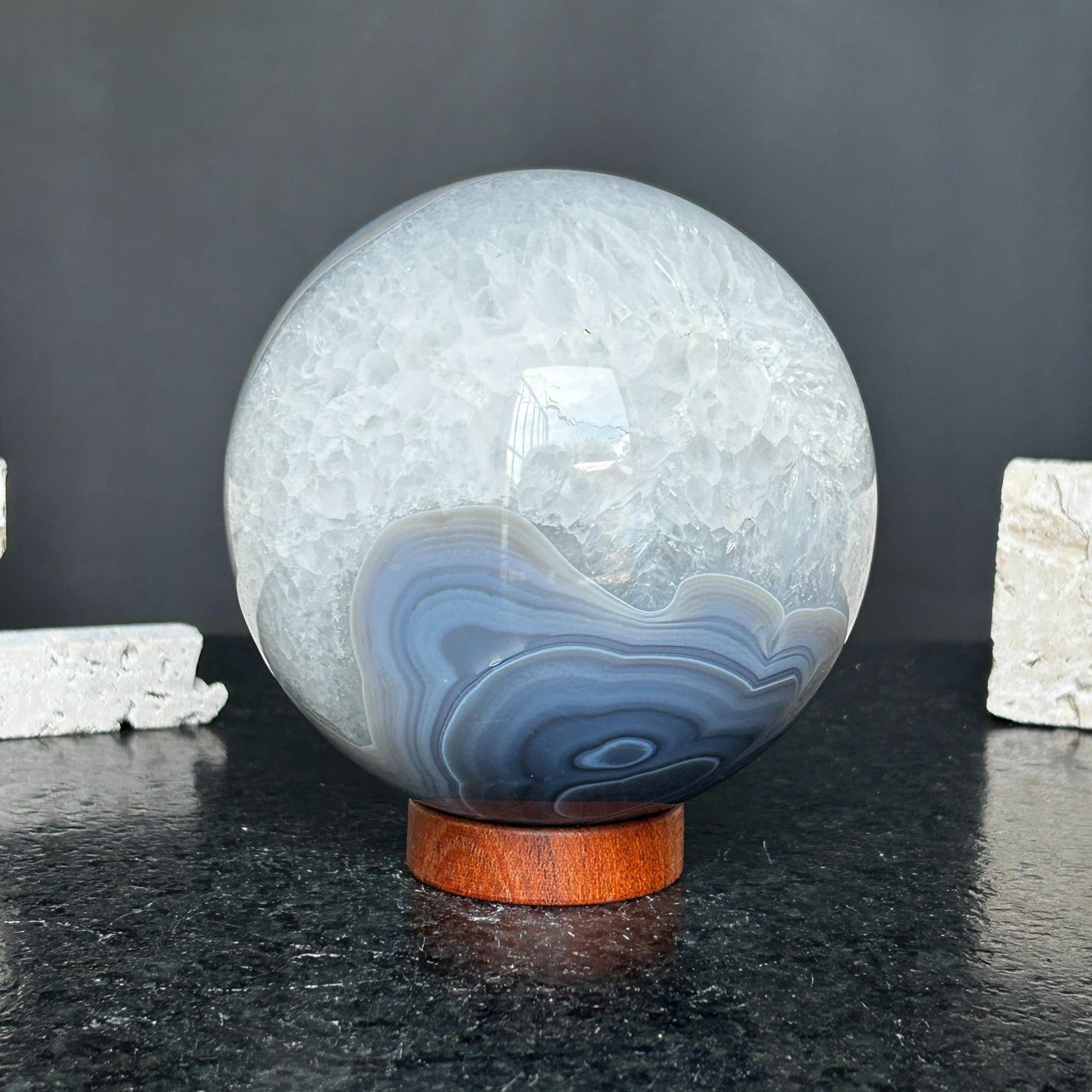 This incredible amazing quartz & agate sphere has the highest quality of the semi-precious stones.