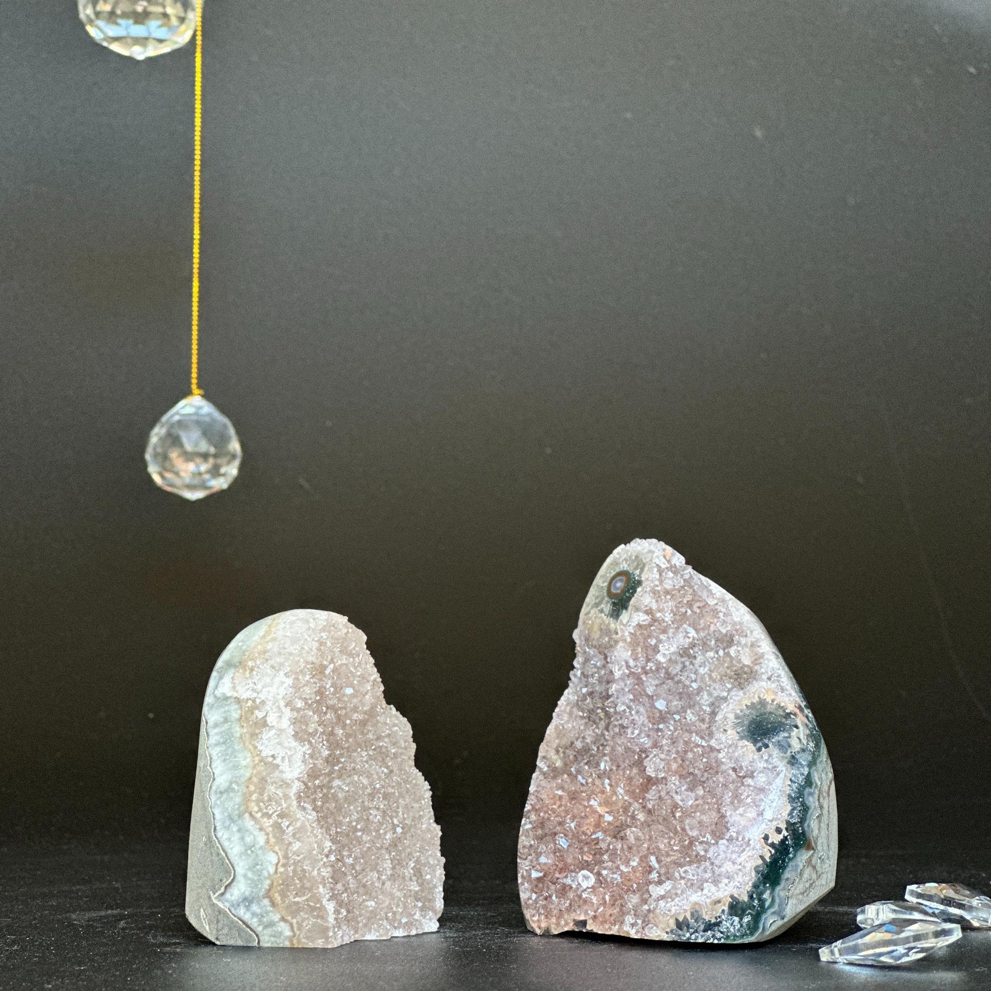 This set of 2 rainbow amethyst clusters with polished edges has the highest quality of the semi precious stones.