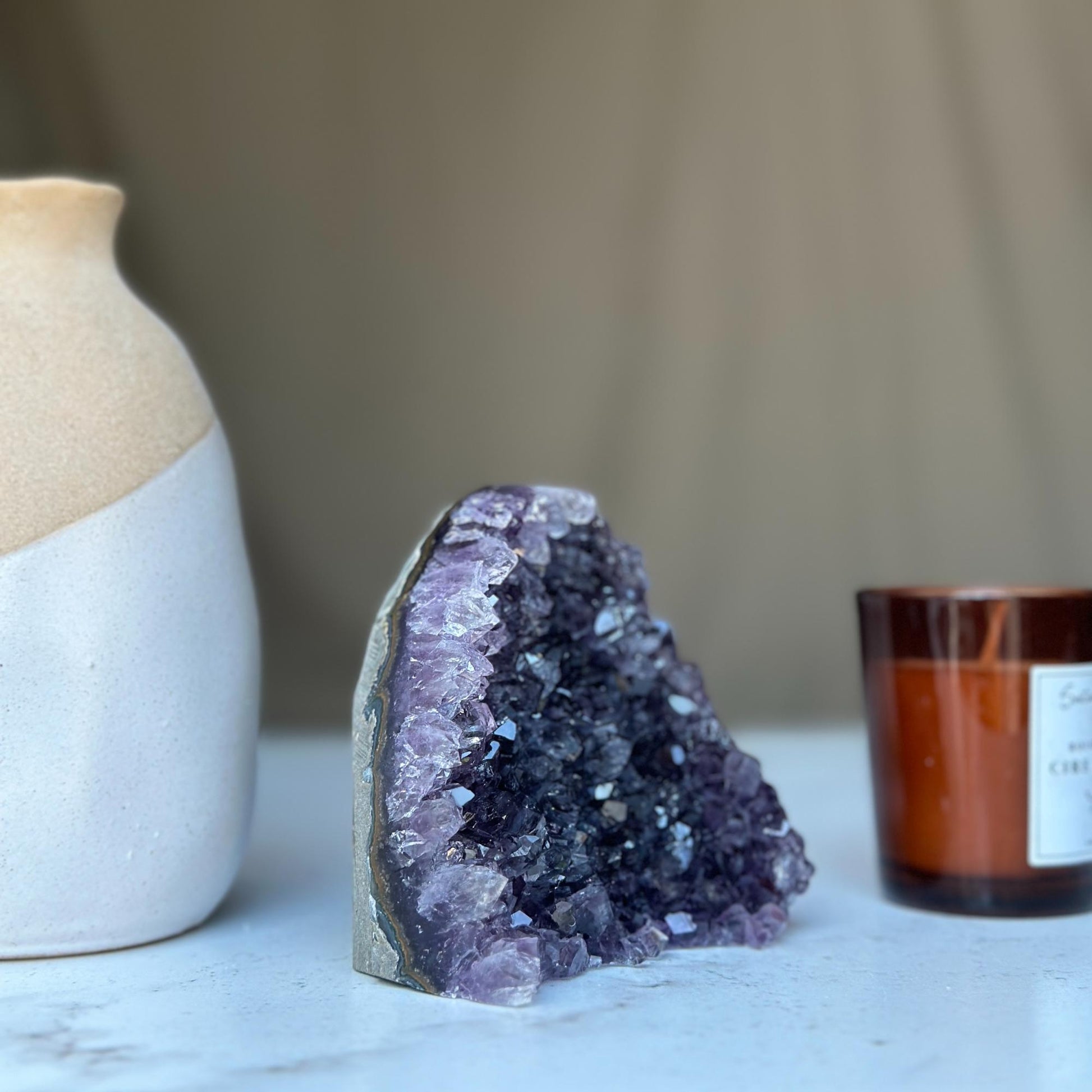 Its vibrant deep purple color is characteristic of the geodes extracted from URUGUAY, one of the few places in the world where you can find. It was extracted respecting the strict standards of open-pit mining in our country that ensure the safe work.