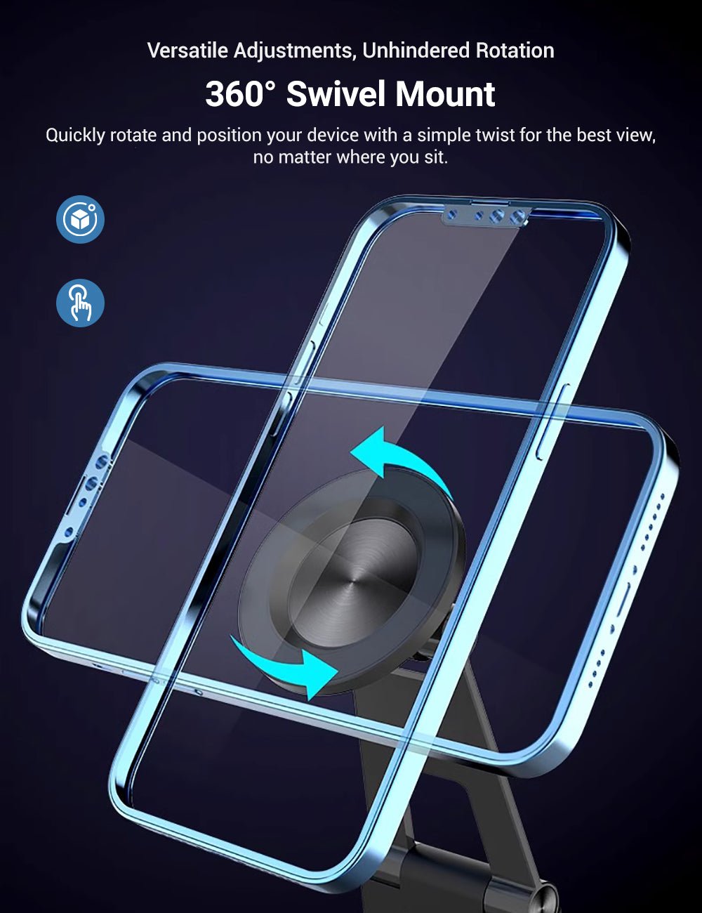 Secure and Magnetic Hold: Our Car Holder features a strong magnetic grip, keeping your tablets or smartphones securely in place, even on bumpy roads. Say goodbye to slipping devices and distractions.