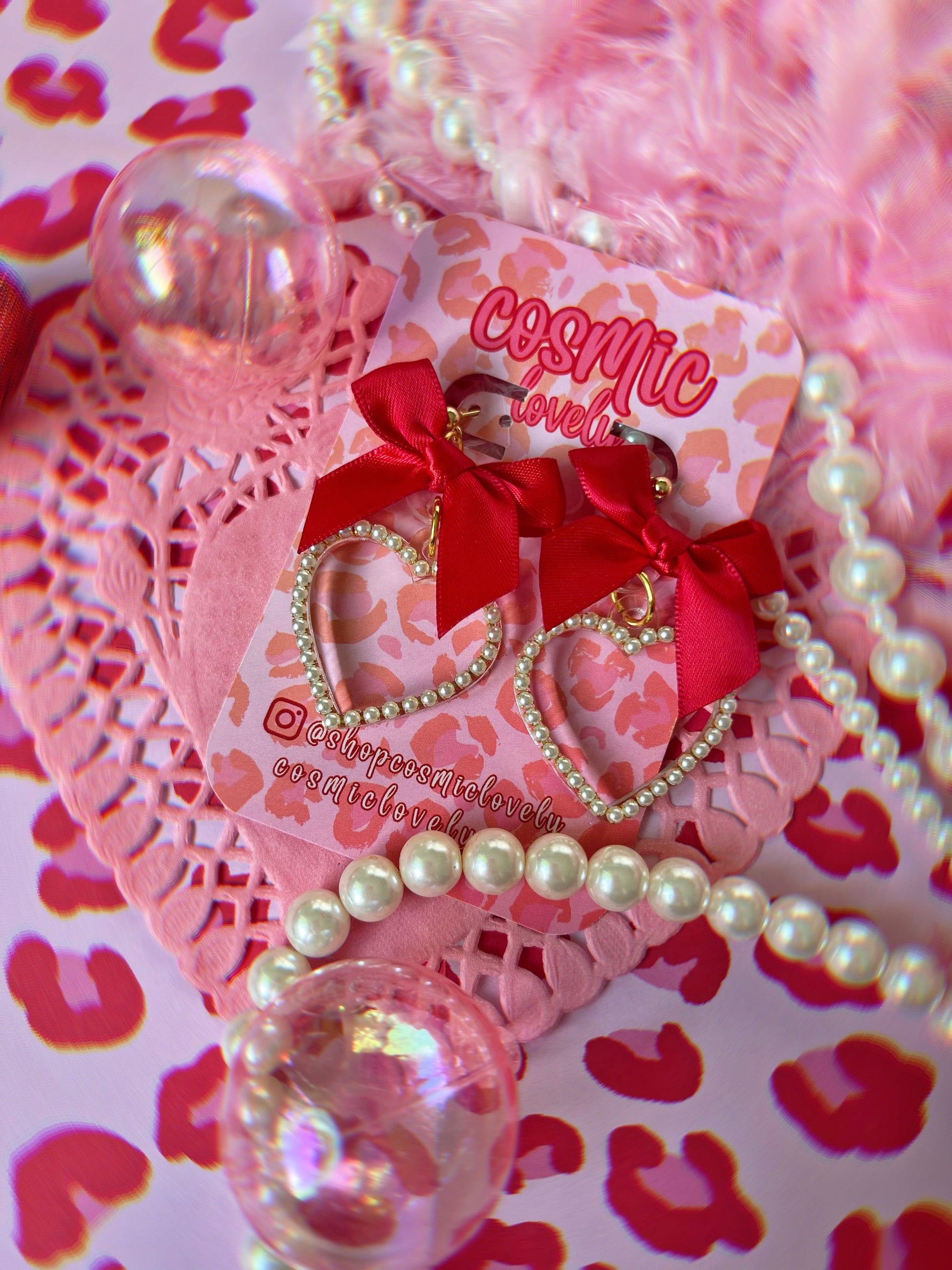 This listing is for ONE Pair of Red Bow Coquette Heart Earrings