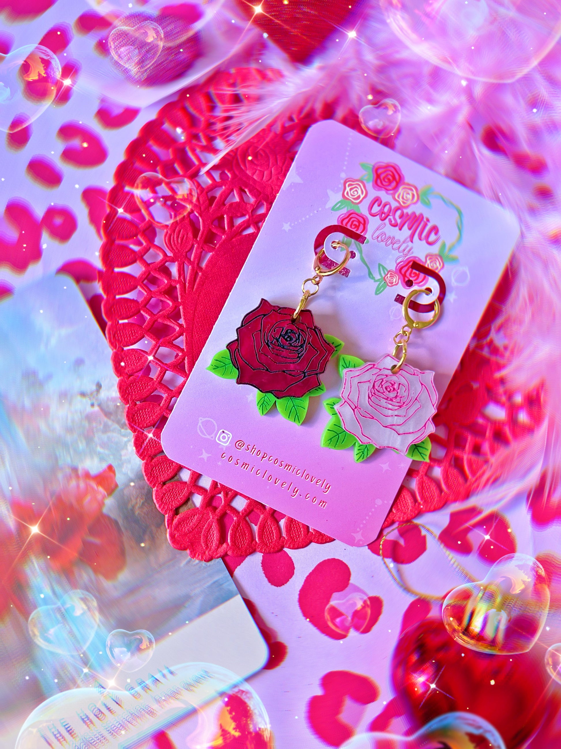 This listing is for ONE Pair of Rose Earrings . Leverbacks are hypoallergenic. If you wish to replace with hooks or hoops please leave me a note at checkout. Earrings are approximately 1.5"