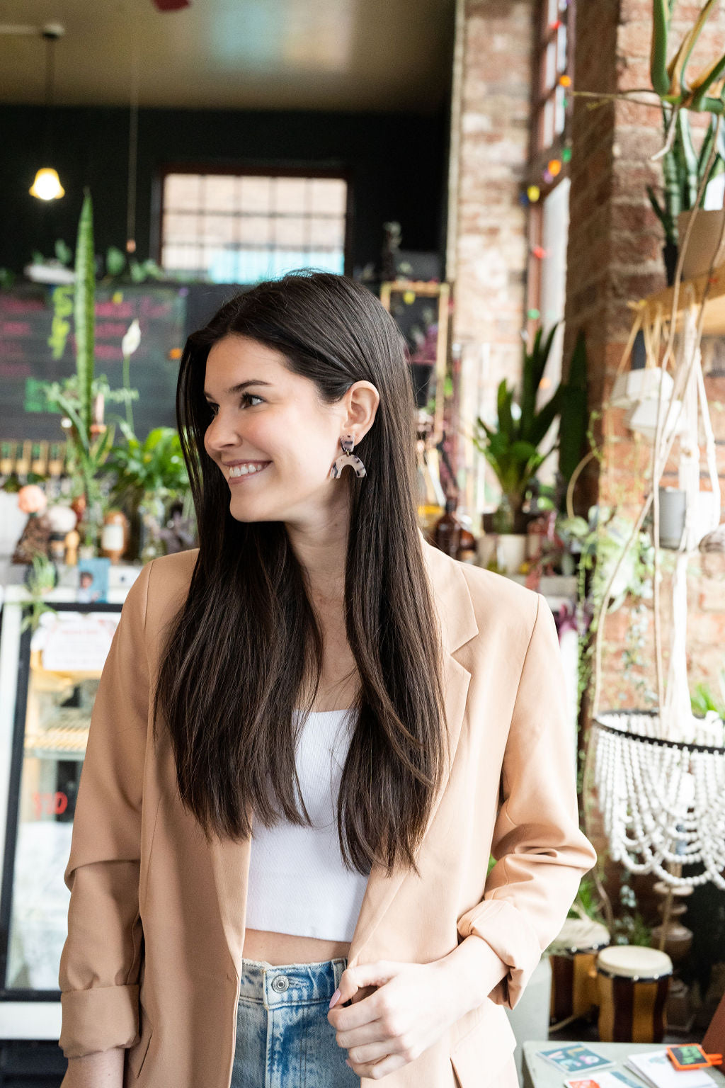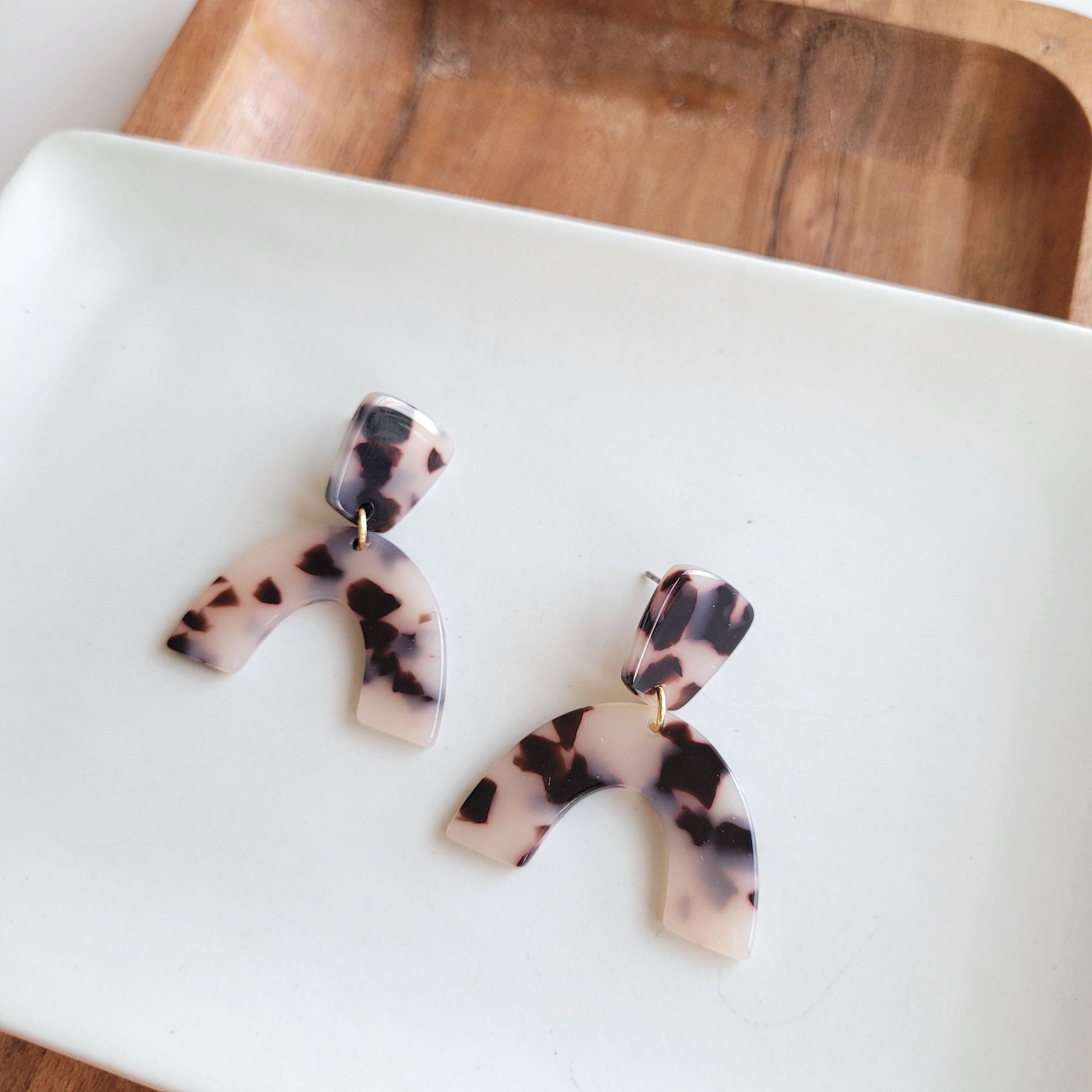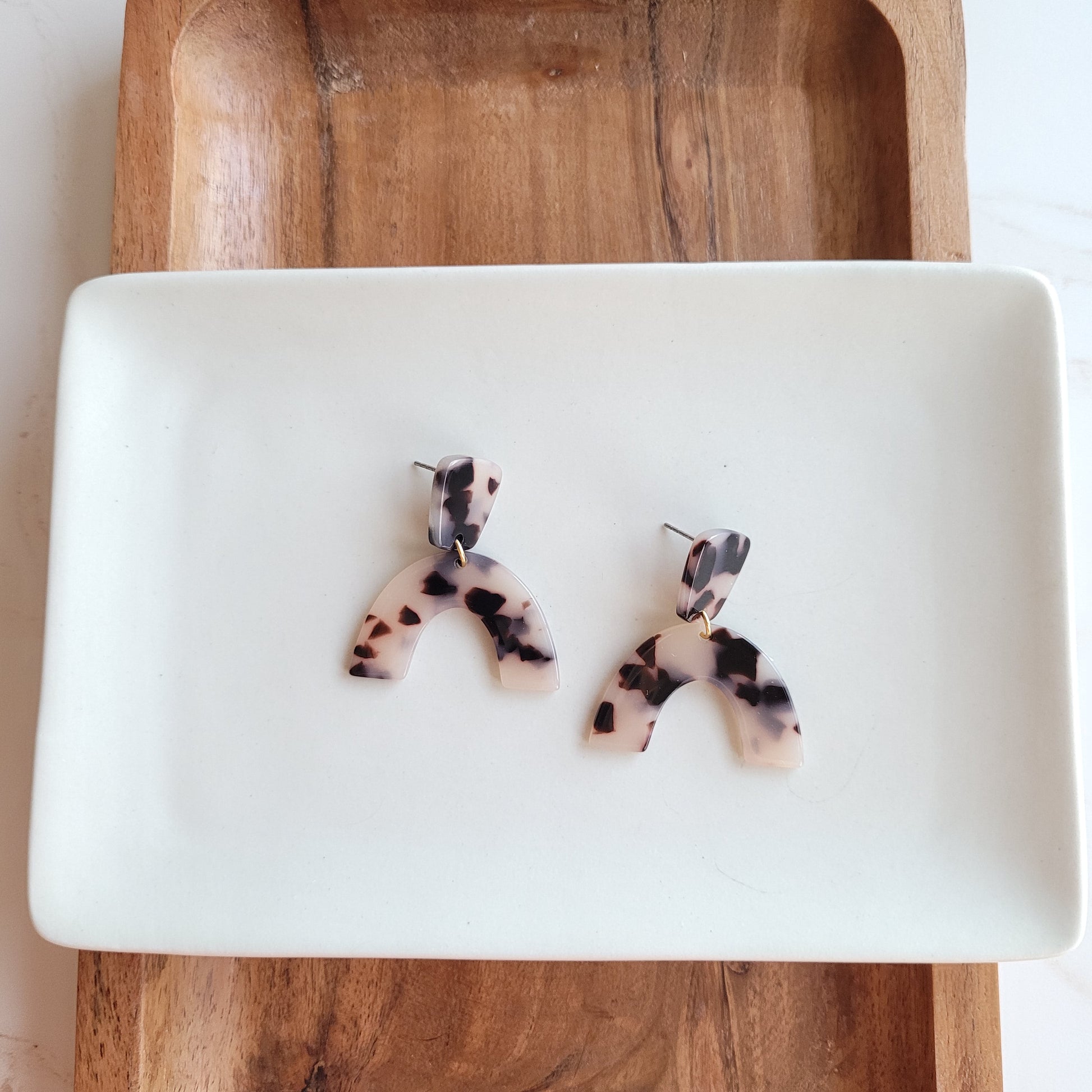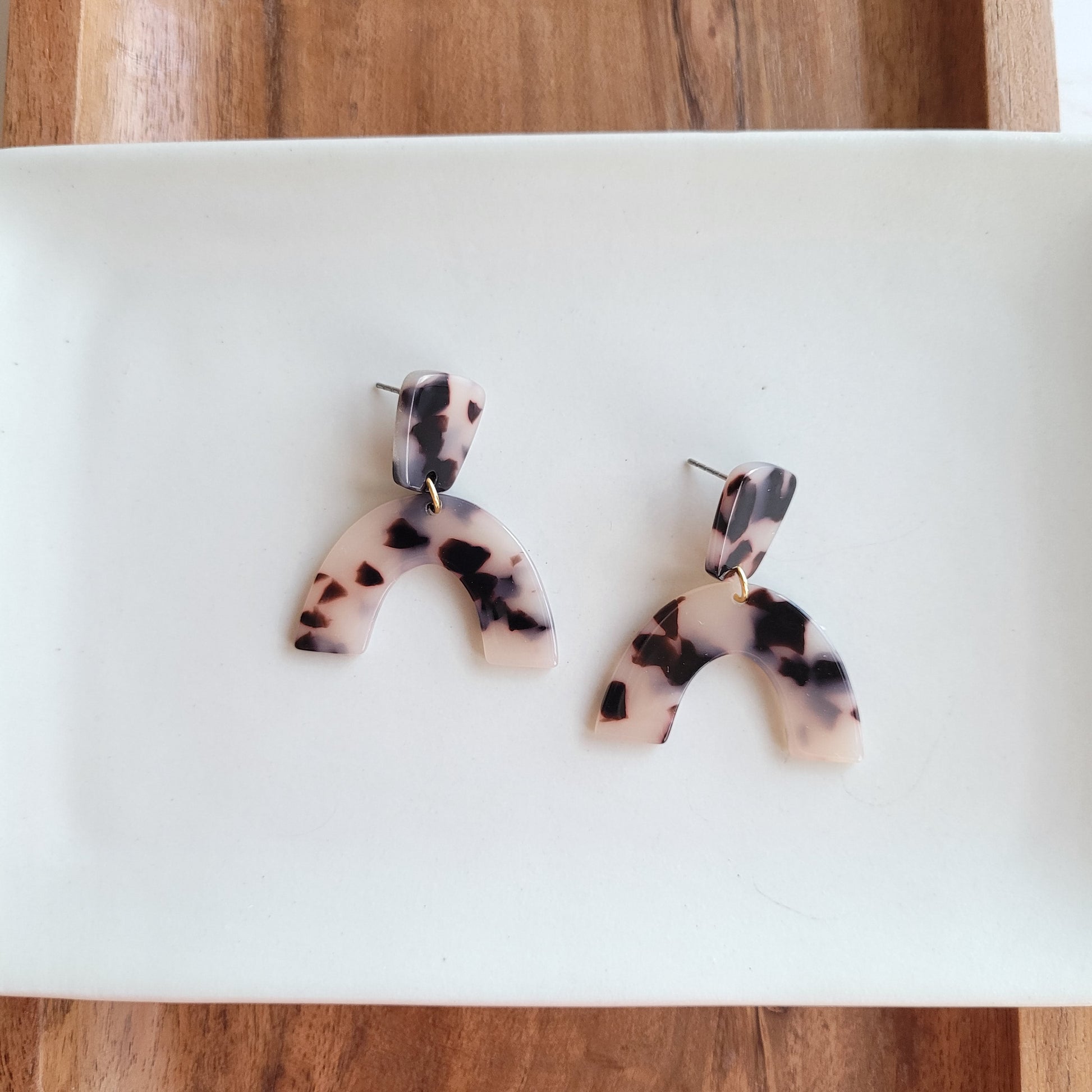 These Ruby earrings feature acrylic arches with matching studs for a complete and stylish look. Perfect for adding a fun pop to any outfit, these earrings are sure to make a statement.