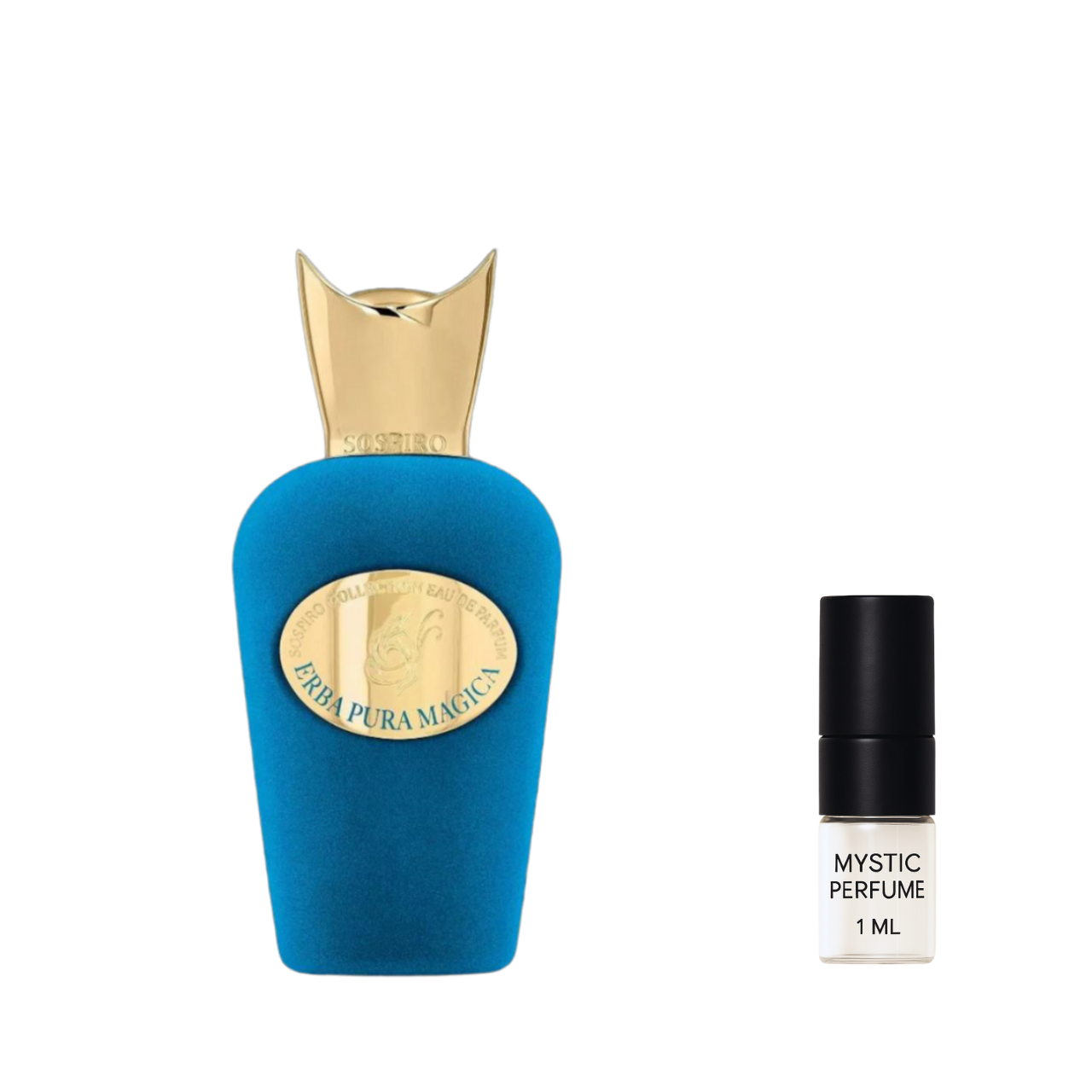 What it is: Erba Pura Magica opens to a succulent blend of delicate Jasmine accents flawlessly intermingling with Juicy and Sweet Bergamot, Lemon, and Fruity notes that are evocative of an internal soothing moment that harmonizes the body, mind, and spirit. At its heart, a composition of Warm and Balsamic notes, pronounced with Earthy and Powdery Orris Accords enriched with Sweet and Woody base notes of Warm Amber, Celestial Musk, Buttery Caramel, and Rich Cedarwood.