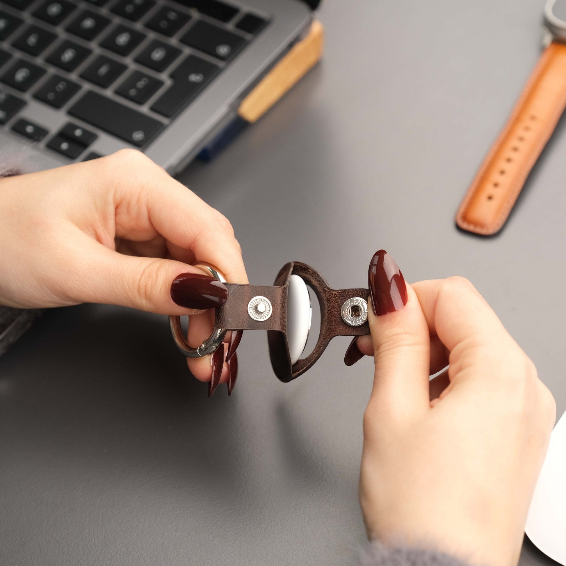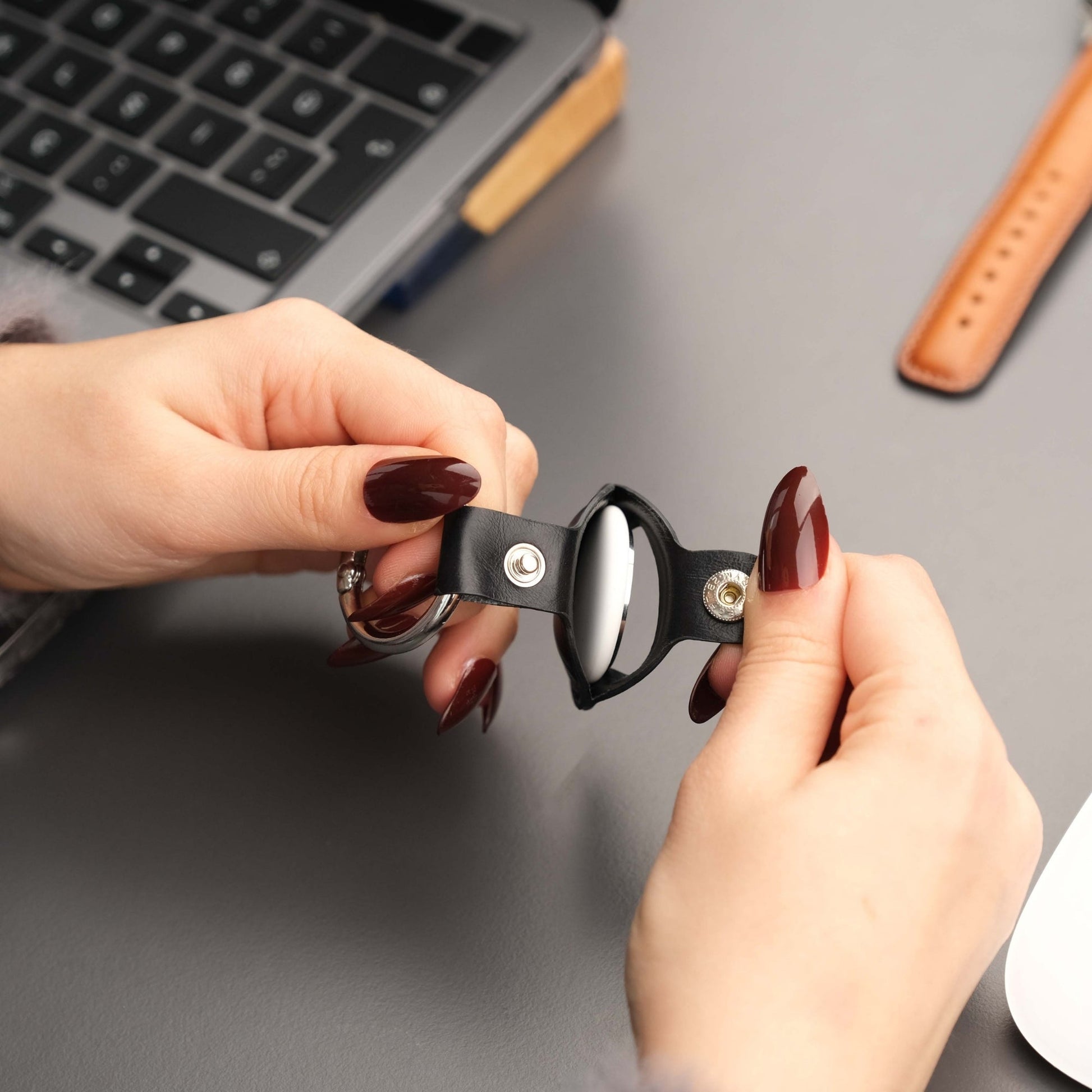 Expert artisans painstakingly craft each holder, paying close attention to every stitch and finish, creating a product of exceptional quality. Compatible with Apple AirTags only, this holder ensures a perfect fit and simple access to all of your device's features.Our handcrafted real leather holder will improve the usability and appearance of your Apple AirTag. Experience the ideal fusion of style, security, and workmanship by placing your order right away.