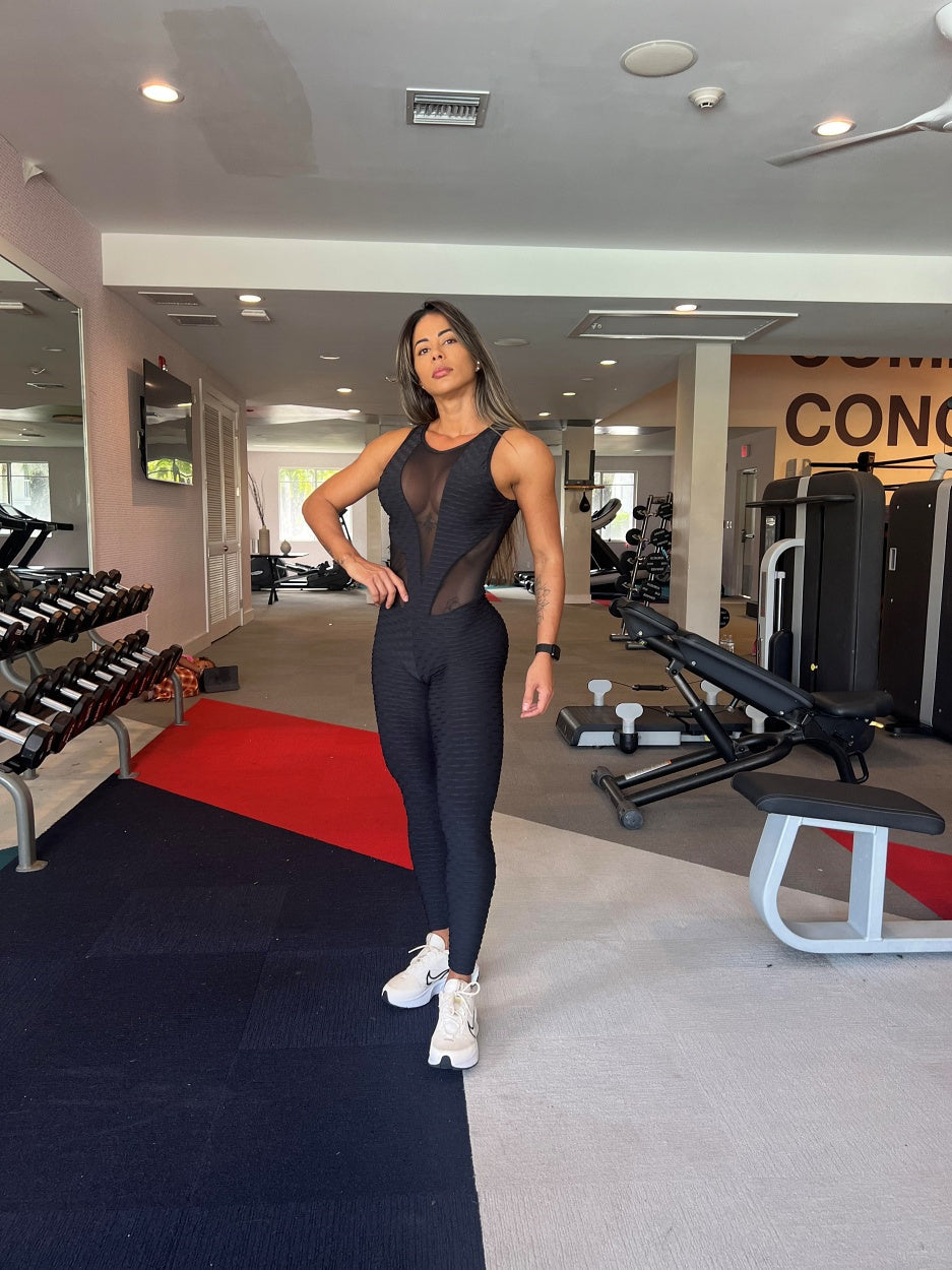 The SCRUNCH BOOTY BLACK WAVE AND MASH SEXY JUMPSUIT provides a comprehensive and efficient full-body workout. It fortifies muscles for improved strength and power, and increases flexibility and core stability for improved athleticism. Get ready for the beach season with this easy-to-use and comfortable jumpsuit.
