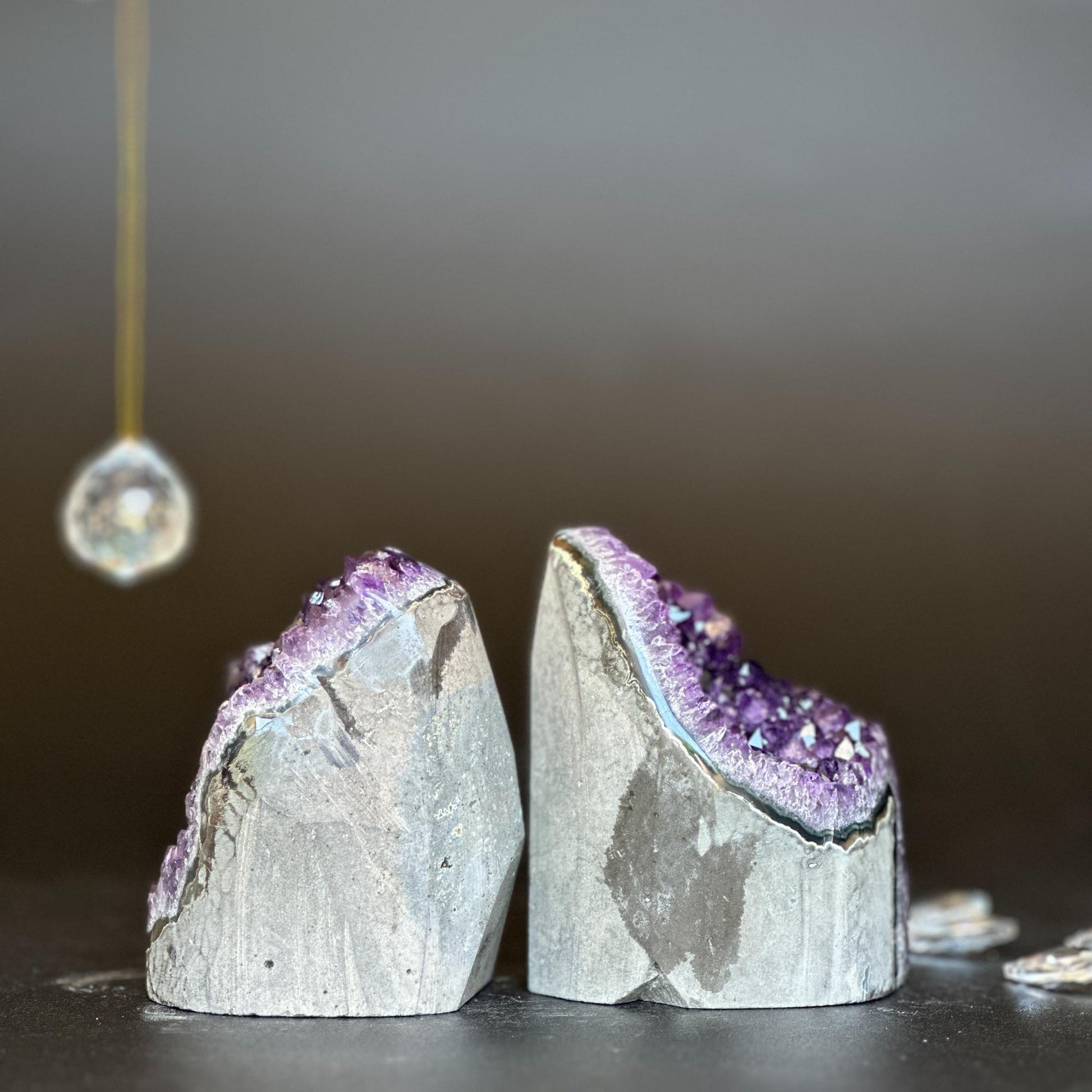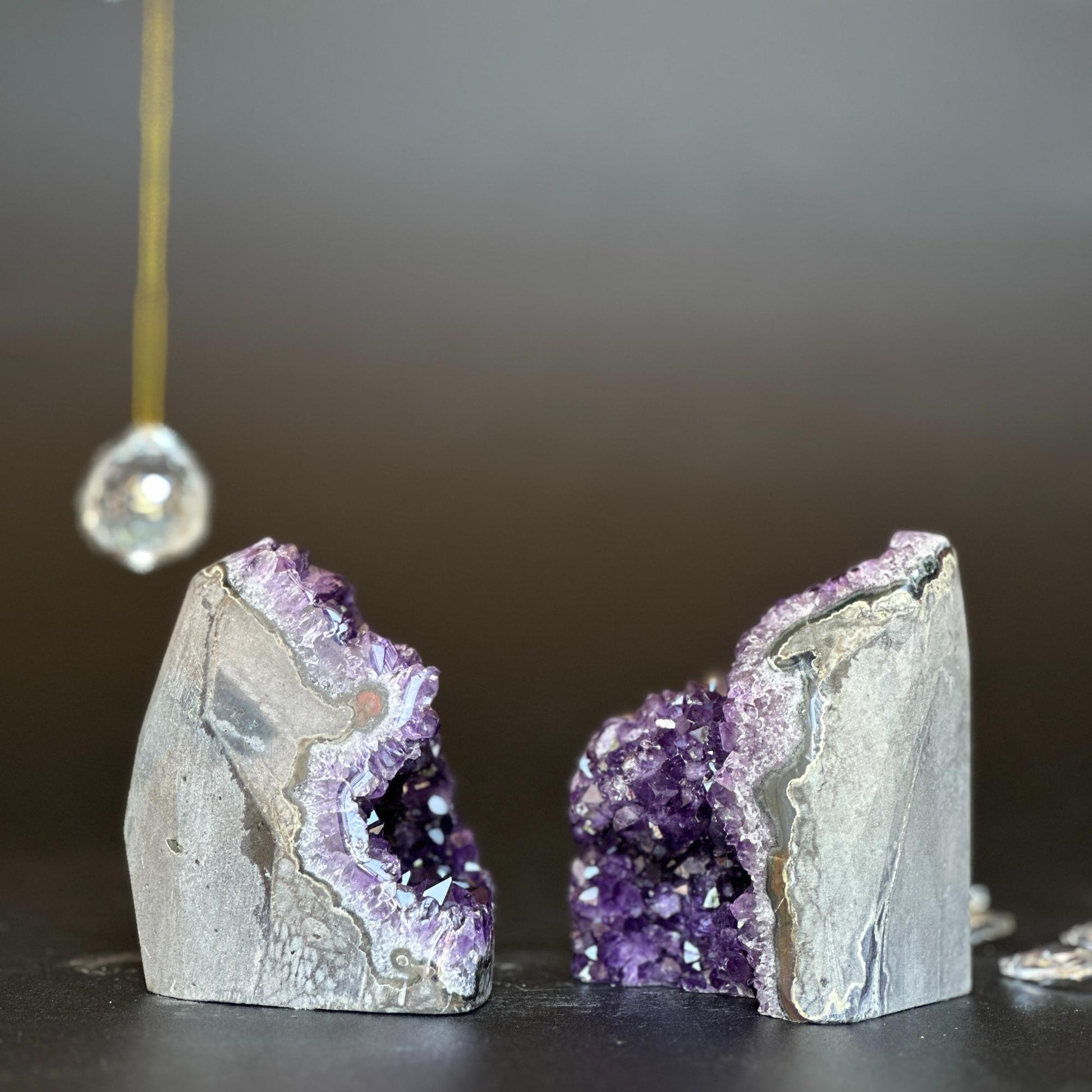 This set of 2 amethyst clusters with polished edges has the highest quality of the semi precious stones.